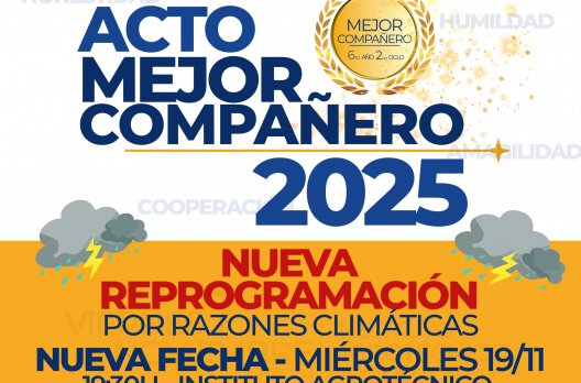 Por cuestiones climáticas, se decidió una nueva reprogramación para el acto de entrega de recordatorios que será el miércoles 19 de noviembre a las 19:30 h, en el salón del Instituto Agrotécnico (Urquiza 2449).