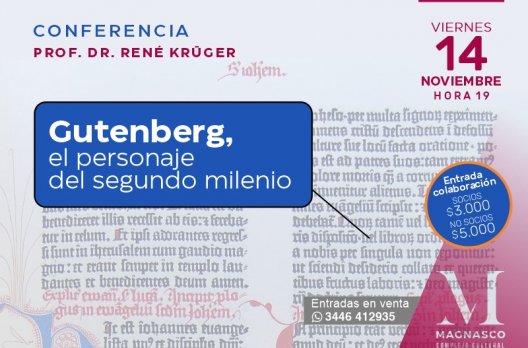 Este viernes 14 de noviembre a las 19 h en MAGNASCO Complejo Cultural, se realizará una conferencia a cargo del Prof. Dr. René Krüger.