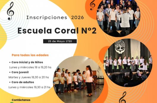 La Escuela Coral nº2 convoca a sumarse a sus coros inicial, infantil, juvenil y de adultos. La enseñanza es gratuita y está destinada a personas desde los 6 años en adelante.