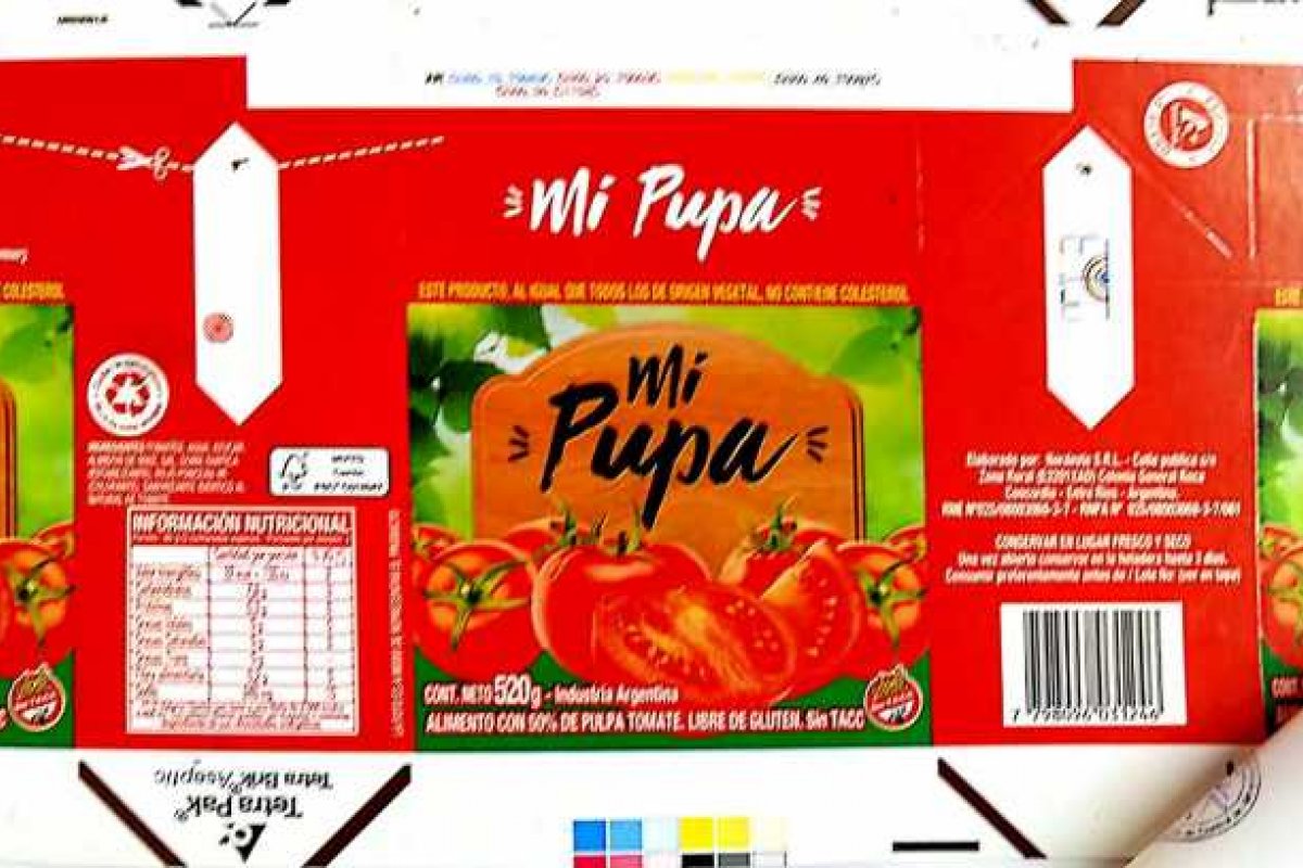Alimento con 50 % de pulpa de tomate. Libre de gluten. Marca: Mi Pupa