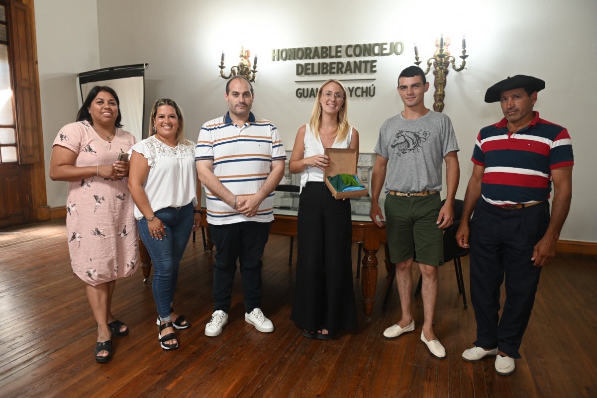 La viceintendenta Dra. Julieta Carrazza y concejales del bloque de Juntos por Entre Ríos, hicieron entrega de la insignia local a quien representará a la provincia en el Festival de Jesús María