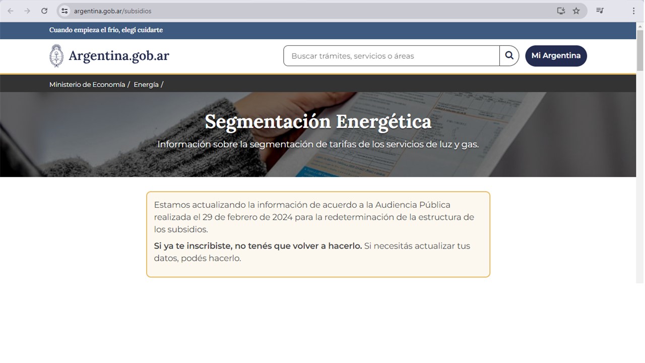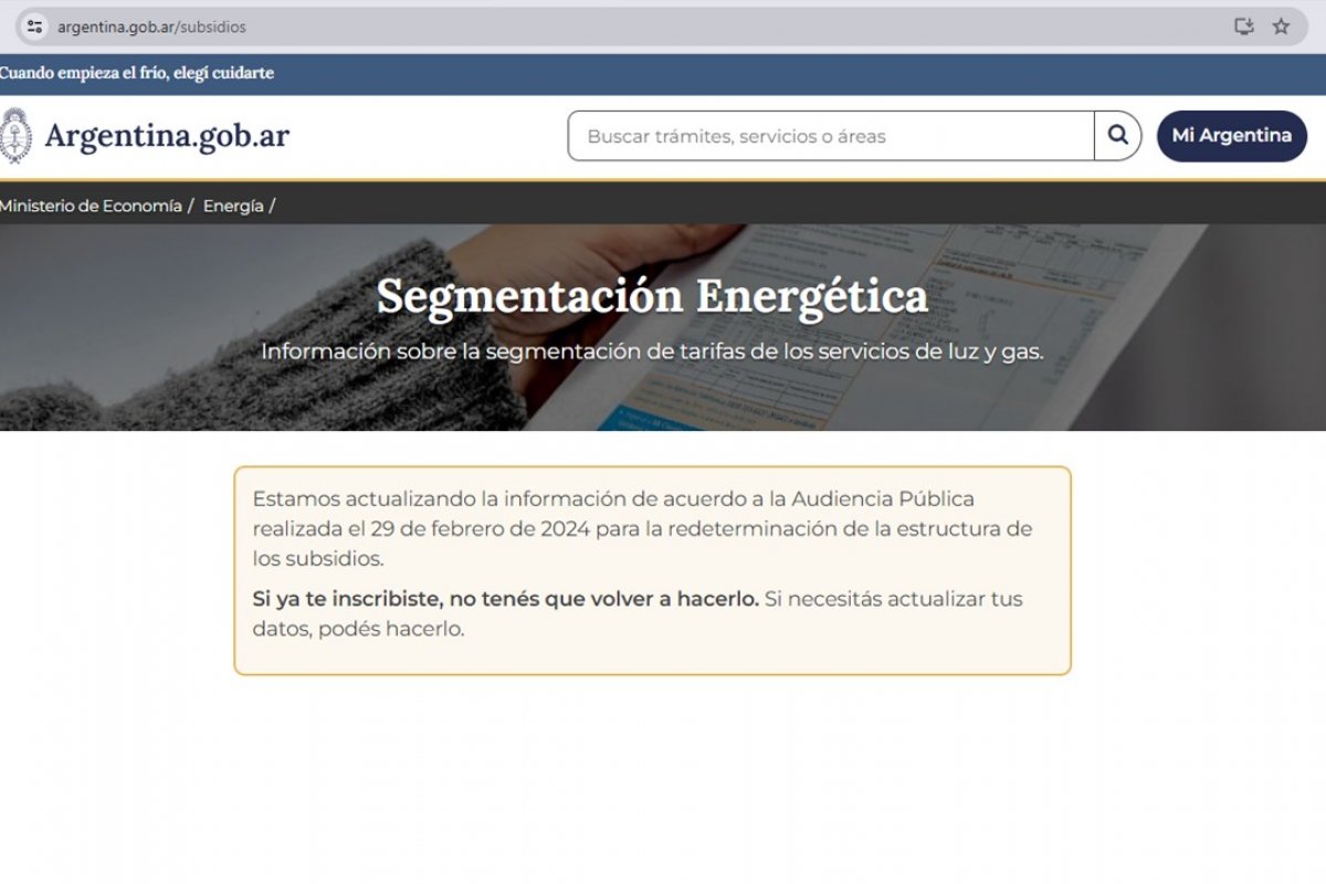 La segmentación energética es un programa del gobierno nacional administrado por la Secretaría de Energía de la Nación. Tiene por finalidad ordenar los subsidios a la electricidad y el gas según los aspectos socio-económicos de cada hogar.