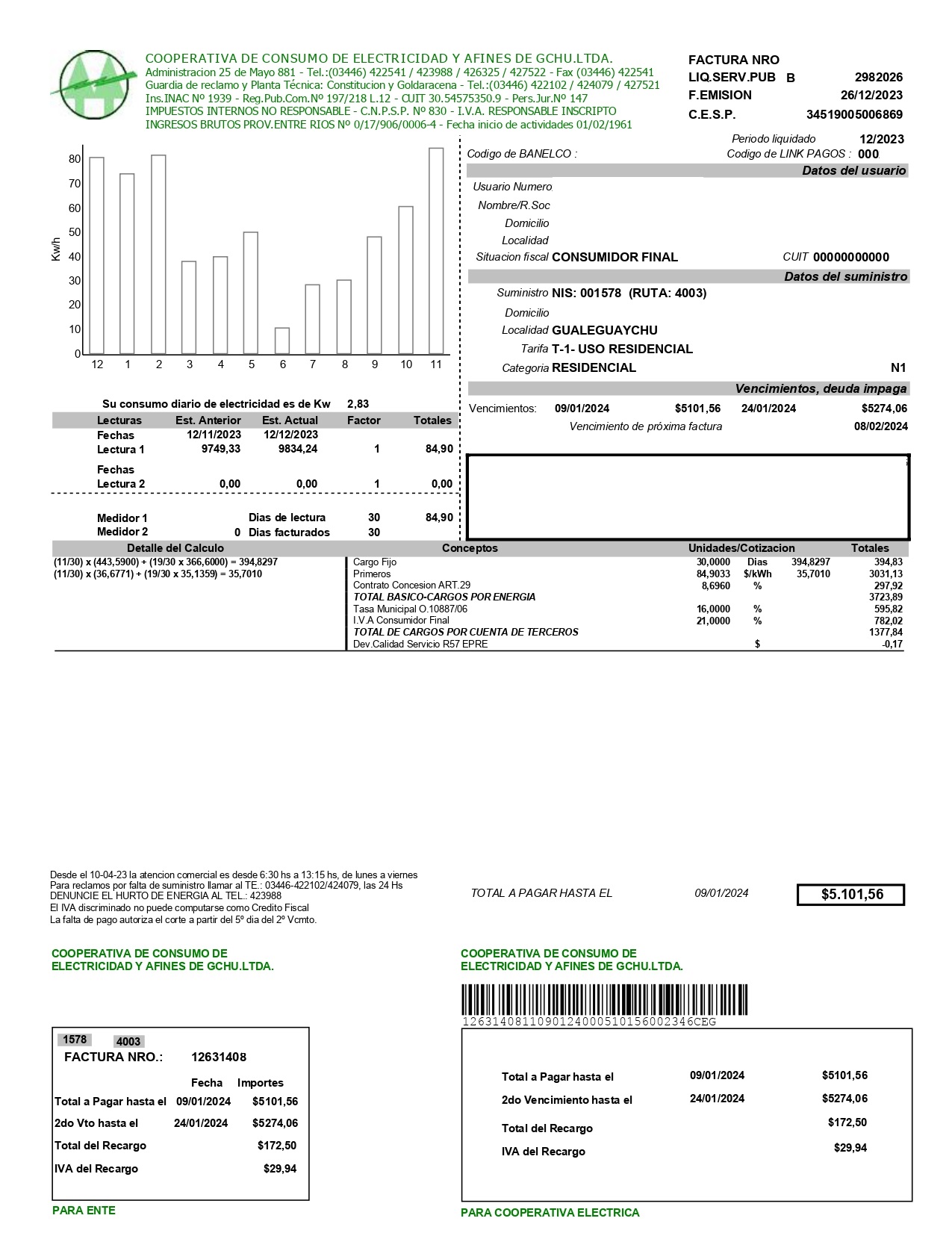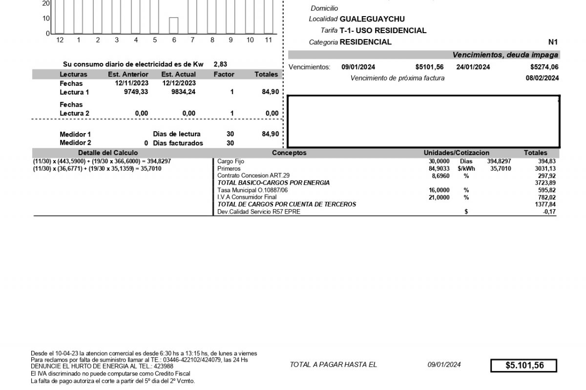 - Las facturas de la Cooperativa Eléctrica Gualeguaychú y GasNea.