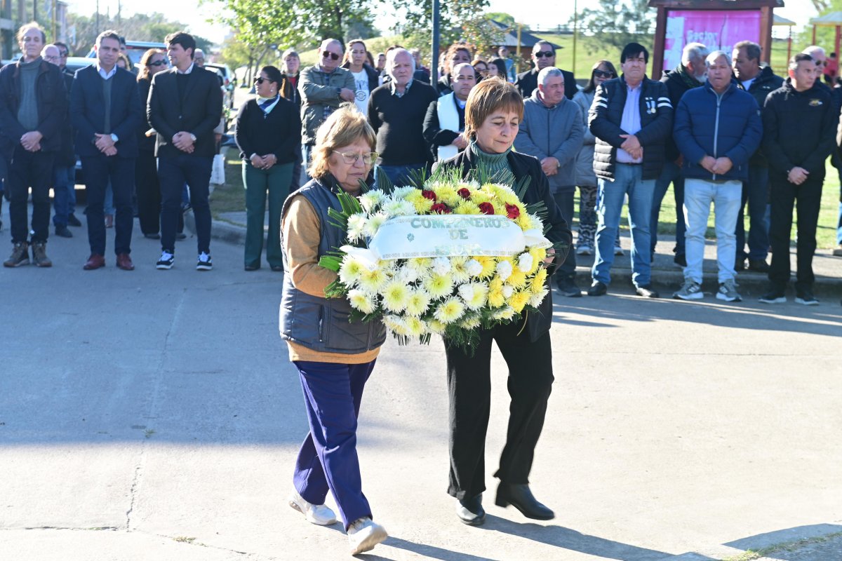 Enseguida, se depositó una ofrenda floral al pie del monumento en memoria de Carlos Mosto. Cada flor, un símbolo de gratitud y homenaje a su vida, su entrega y su legado.