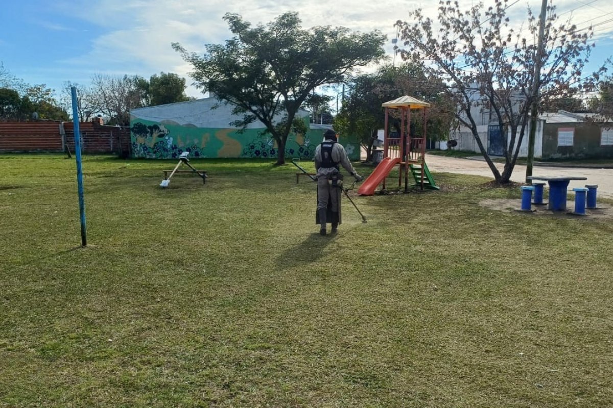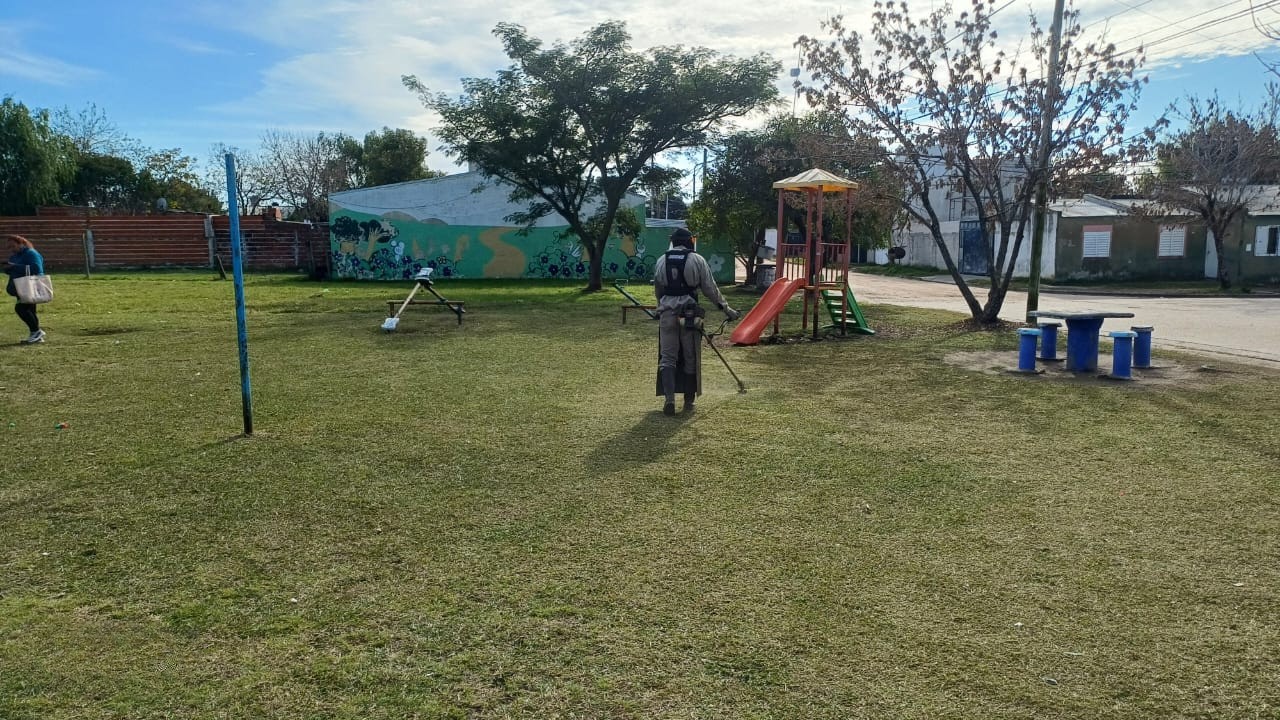 La Municipalidad continua con las tareas de mantenimiento y mejora de plazas y espacios públicos. Limpieza, corte de pasto, reparación en bancos y juegos forman parte del plan integral de puesta en valor en distintos barrios de la ciudad.