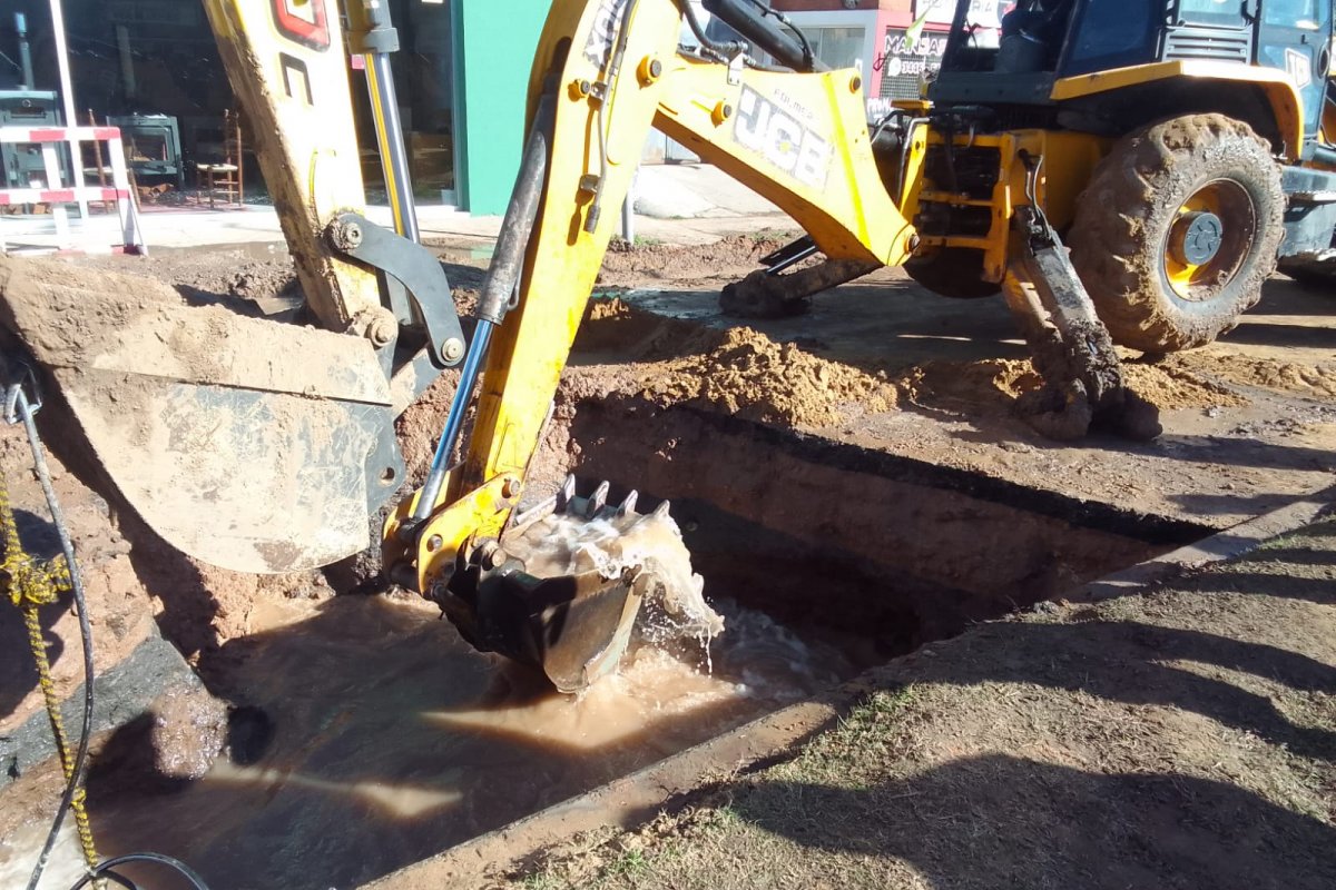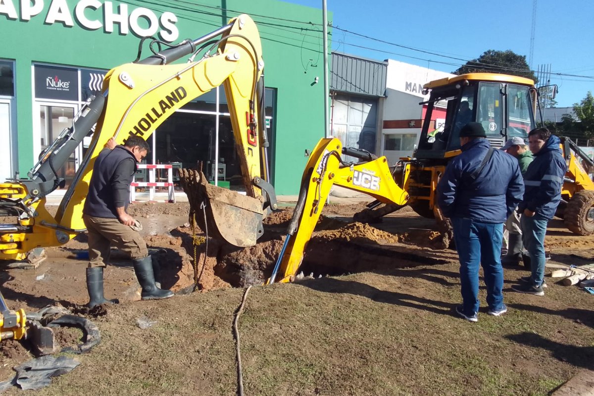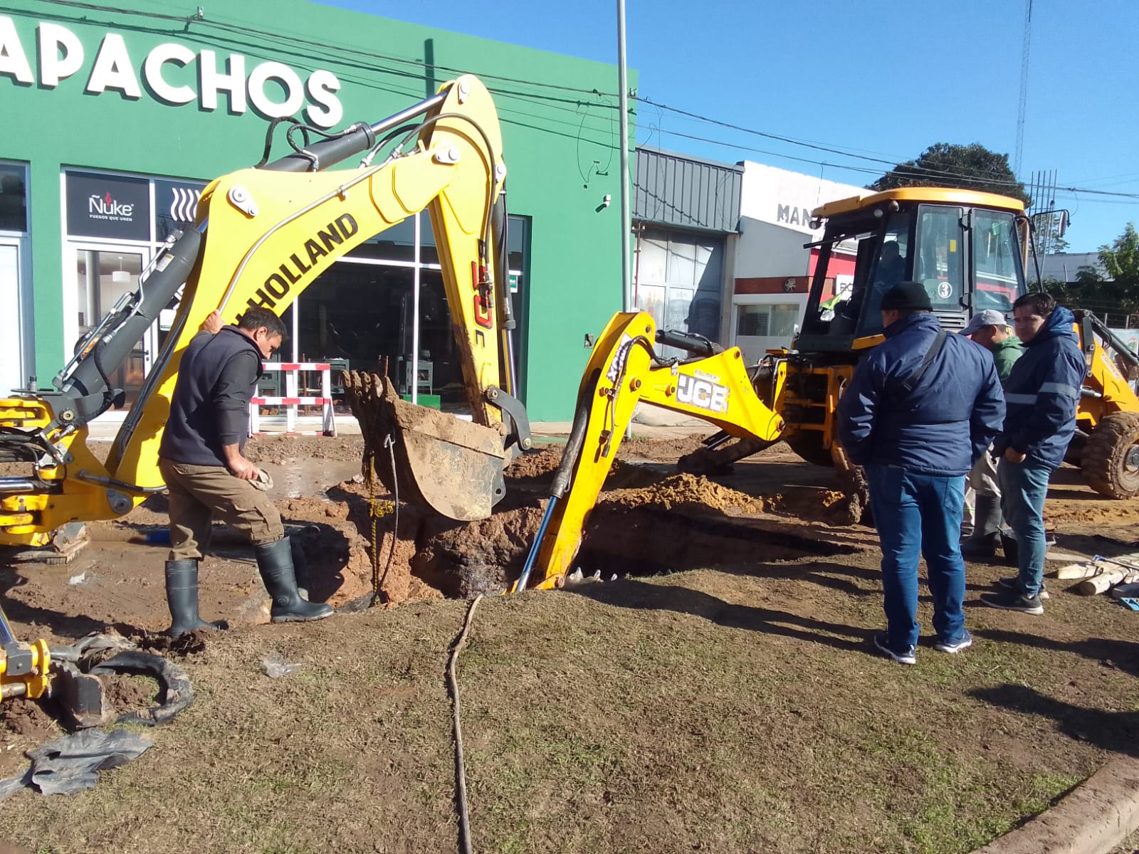 El jueves por la mañana, una cuadrilla de la Dirección de Obras Sanitarias comenzó con un trabajo intenso en la esquina de Avenida Parque y Concordia debido a que se detectó una rotura en un caño de distribución de agua potable de 150 milímetros.