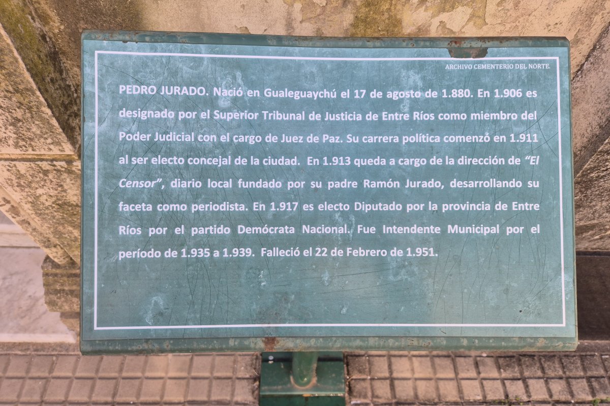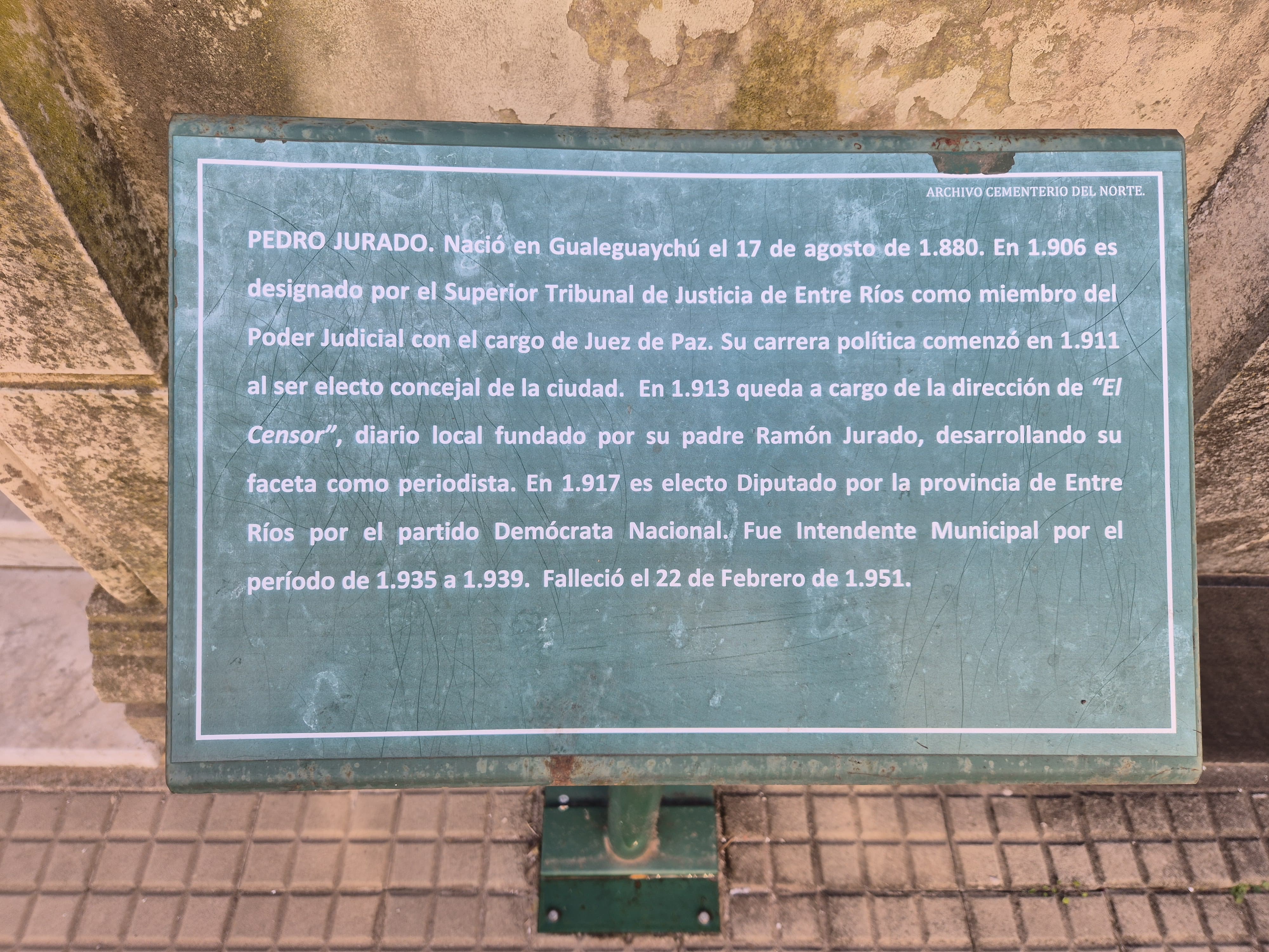 Don Pedro Jurado (1880-1935), fue una figura central en la historia de Gualeguaychú. Entre sus múltiples tareas se destacó como periodista, juez de paz, concejal, diputado provincial y, además, fue el primer intendente electo por voto popular en 1935. Su gestión se destacó por la integridad, la transparencia y un modelo de administración pública moderno, que incluyó el saneamiento de las finanzas municipales, sistemas de rendición de cuentas y obras clave en infraestructura y salud.