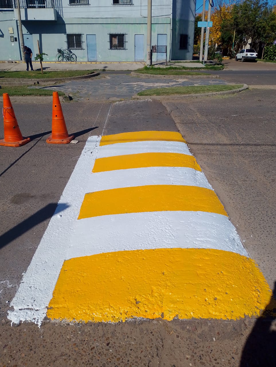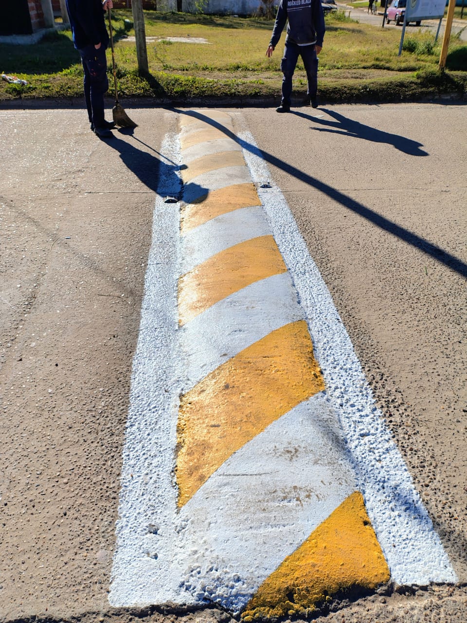 Por otro lado, se están realizando tareas de pintura y cerramiento de los lomos de burro sobre calle Urquiza al oeste, con el objetivo de aumentar la visibilidad de estos reductores de velocidad y prevenir accidentes. La correcta señalización horizontal es clave para advertir a conductores sobre los cambios en la calzada, promoviendo una circulación más responsable y segura.