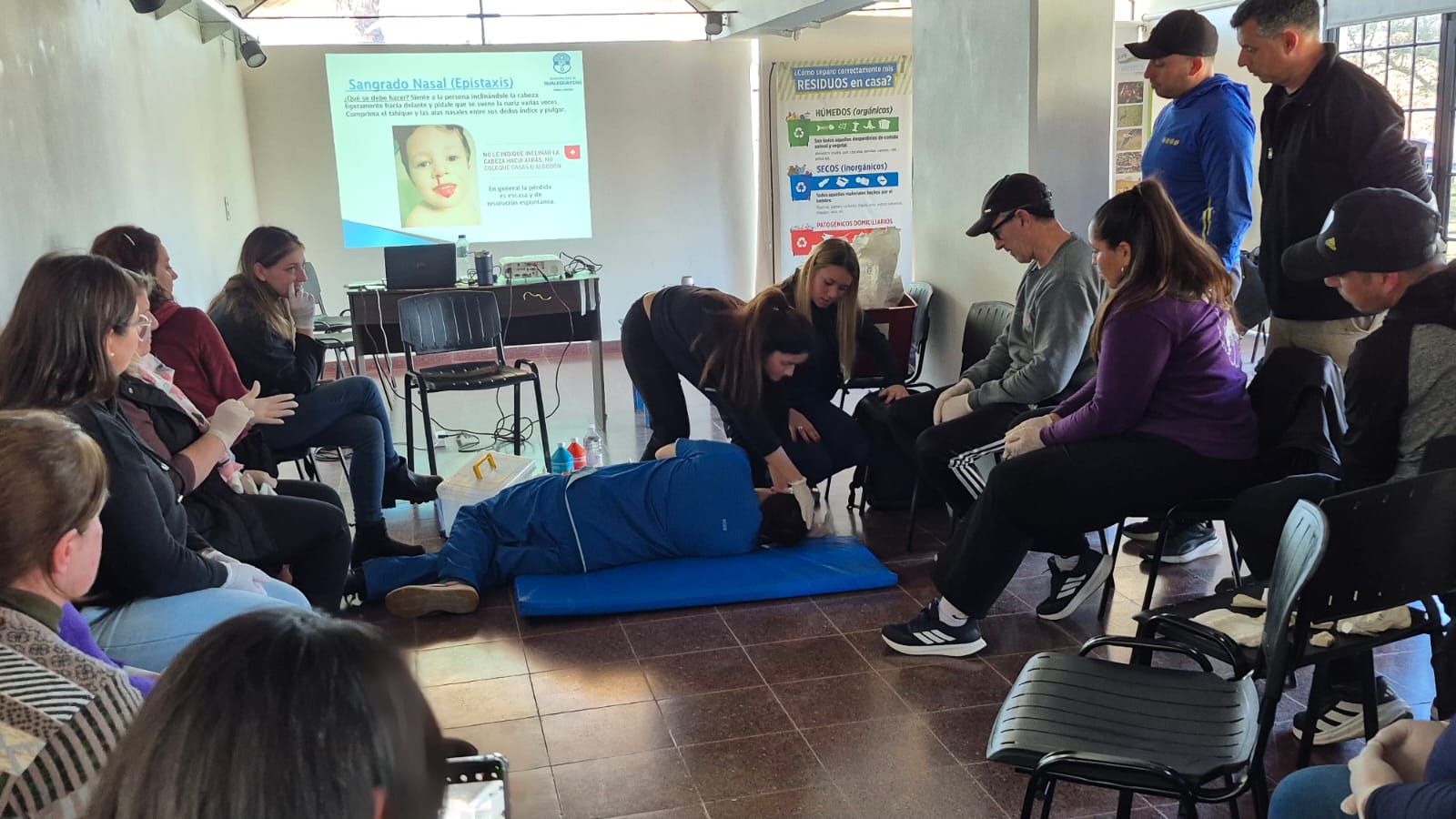 La charla estuvo dirigida a quienes integrarán el equipo de carrozas, con contenidos centrados en la prevención, atención primaria y organización en situaciones de riesgo.