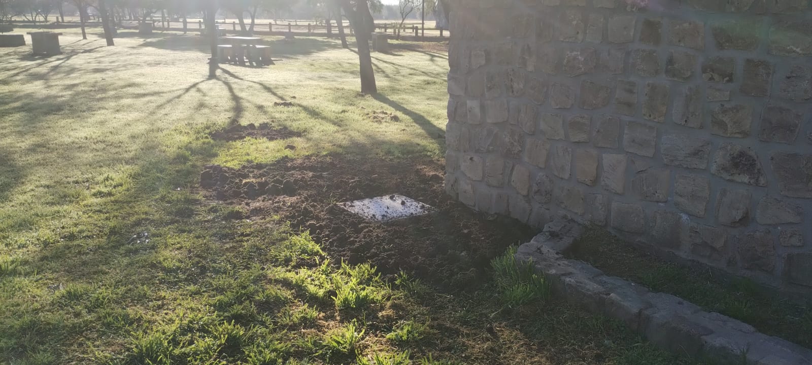 Entre las intervenciones realizadas, se destaca el relleno y emparejamiento de las cámaras sépticas recientemente instaladas en los baños públicos, con el objetivo de optimizar su funcionamiento y garantizar mayor seguridad para quienes transitan por el lugar.