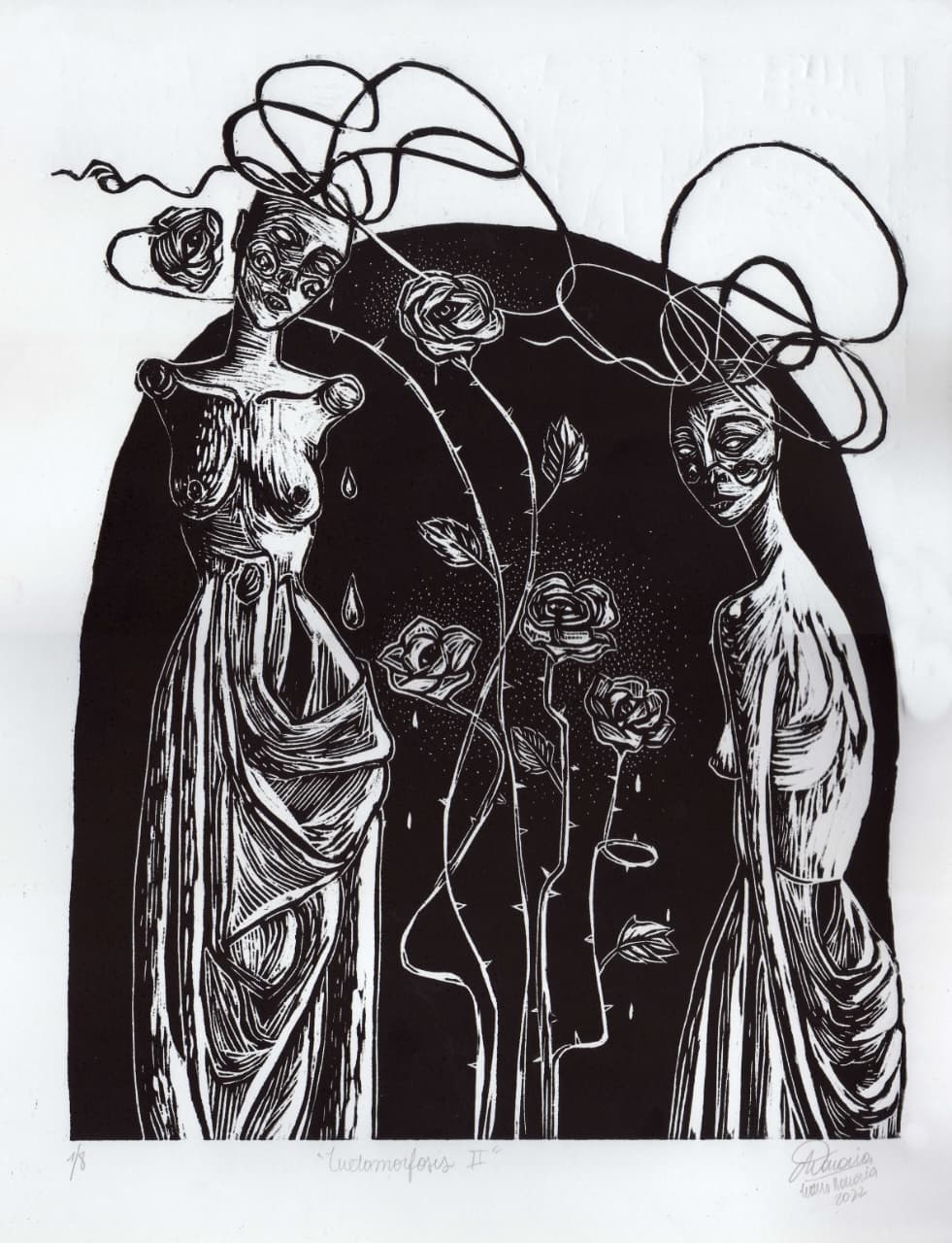 Maira Daiana Archain nació en Gualeguaychú en 1991 y es Técnica Superior en Artes Plásticas, egresada en 2017 del Instituto Superior de Arte. Desde hace ocho años dirige “Creativos Taller de Arte”, donde dicta clases de dibujo, pintura, grabado y cerámica. Su trabajo se caracteriza por la honestidad y la búsqueda constante, explorando distintas técnicas como grafito, lápices de colores, pastel al óleo y detalles cosidos, así como variadas técnicas de grabado.