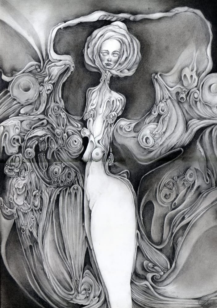 Para la artista, cada obra nace de una emoción y evoluciona sin boceto previo, permitiendo que la imagen y el título surjan de manera orgánica. Sus creaciones, más que decorativas, buscan generar sensaciones diversas, desde la identificación hasta la incomodidad, invitando a quien las observe a una experiencia viva y personal.