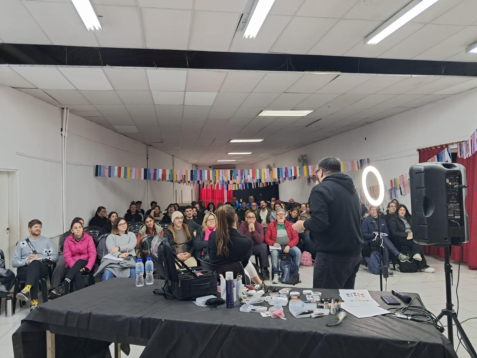 Las acreditaciones tuvieron lugar en el Centro de Convenciones de la ciudad y, posteriormente, los participantes se dividieron en dos espacios de formación. Un grupo asistió al taller de vestuario en las instalaciones de la Comparsa Kamarr, donde las clases estuvieron a cargo del realizador Raúl Galarraga, mientras que el otro grupo participó de la clase de maquillaje artístico integral dictada por el destacado Gervasio Larrivey, en el salón de la escuela del Complejo Educativo Sirio Libanés.