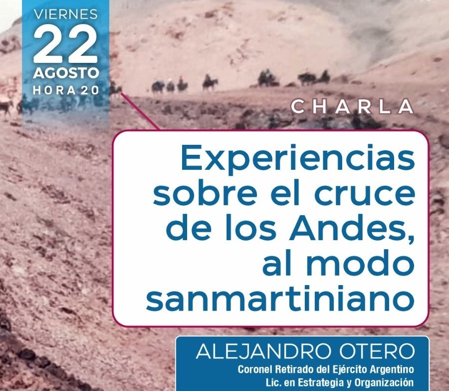 Con entrada libre y gratuita, Alejandro Otero, Coronel retirado del Ejército Argentino y Licenciado en Estrategia y Organización, brindará esta interesante charla sobre experiencias del cruce de los Andes.