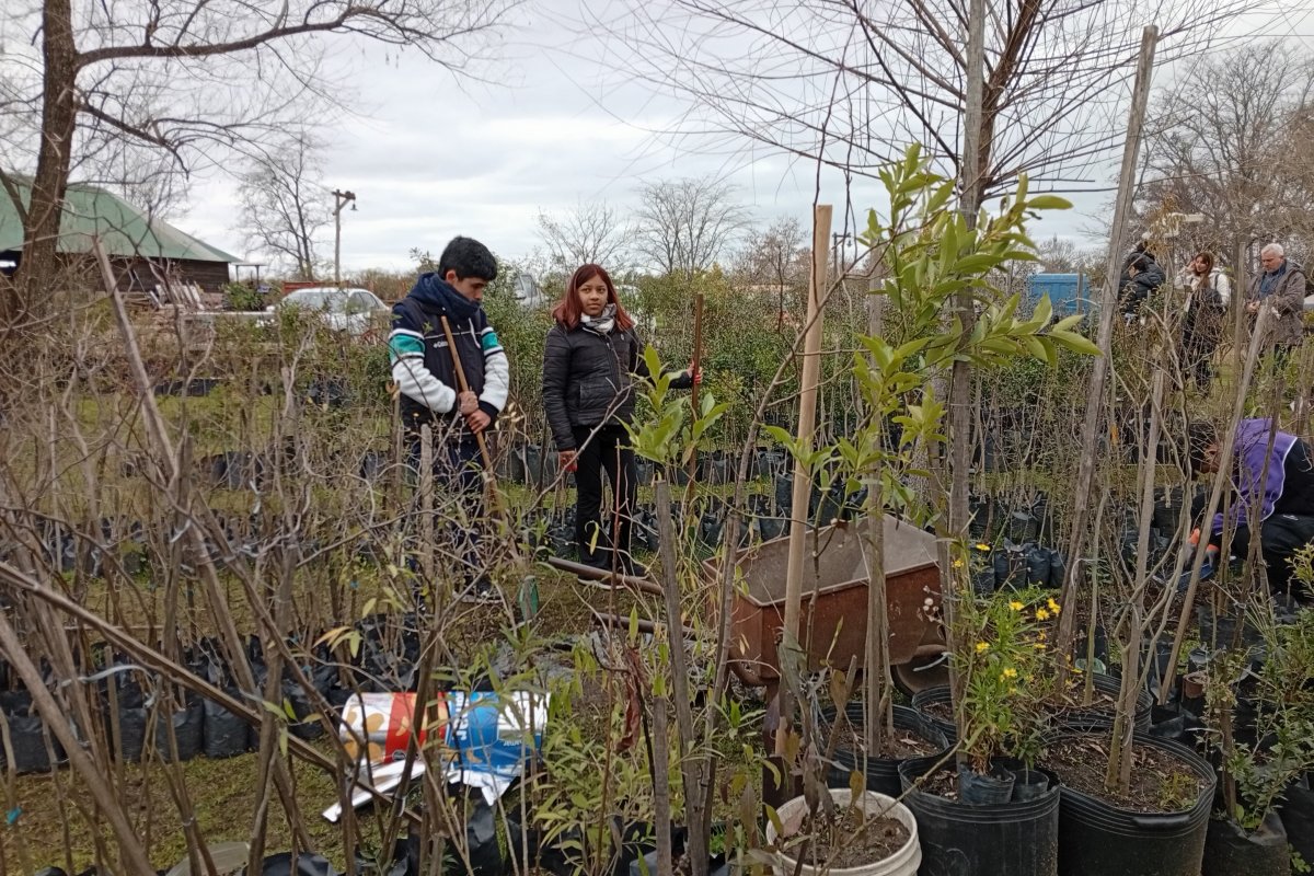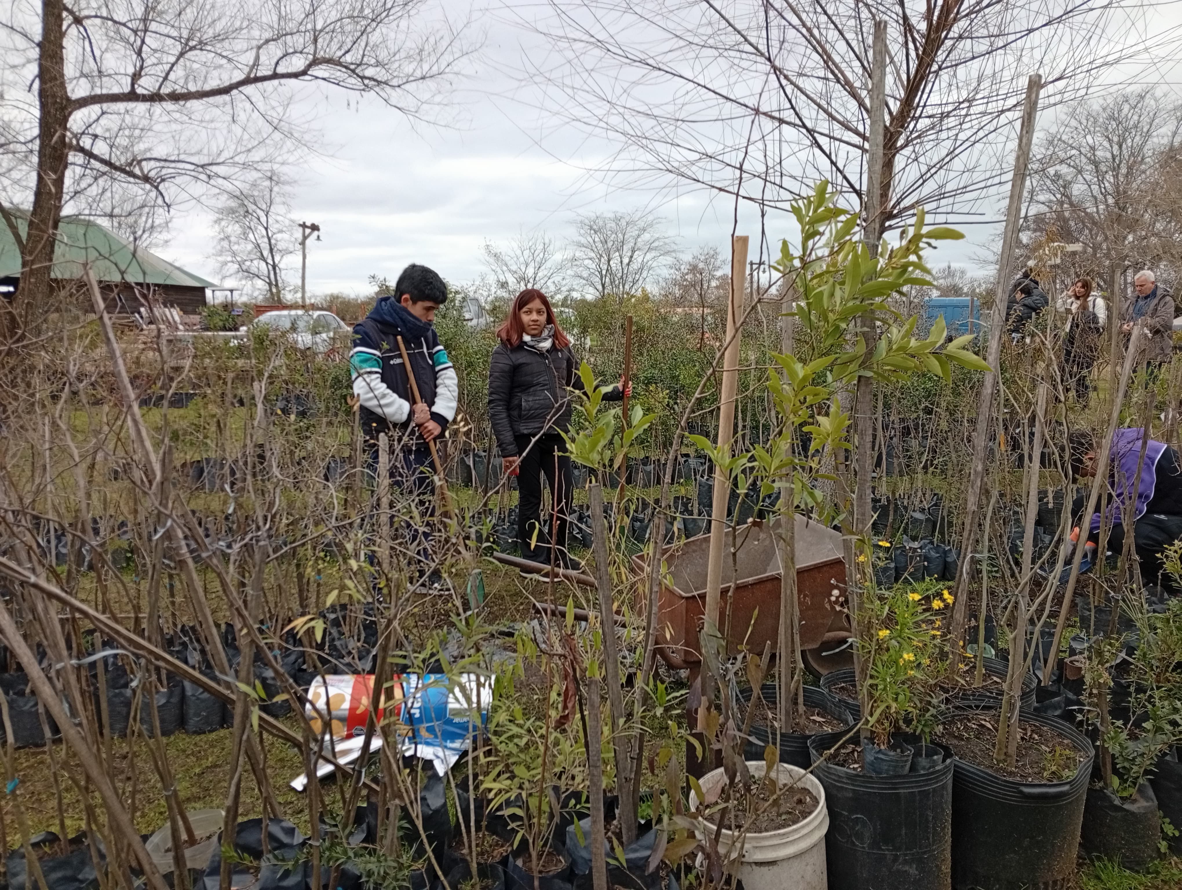Durante la jornada, los jóvenes participaron en actividades vinculadas a la producción de plantas, preparación de sustratos, organización del vivero y cuidado de especies nativas, contribuyendo al mismo tiempo a la preservación del arbolado urbano y la biodiversidad local.