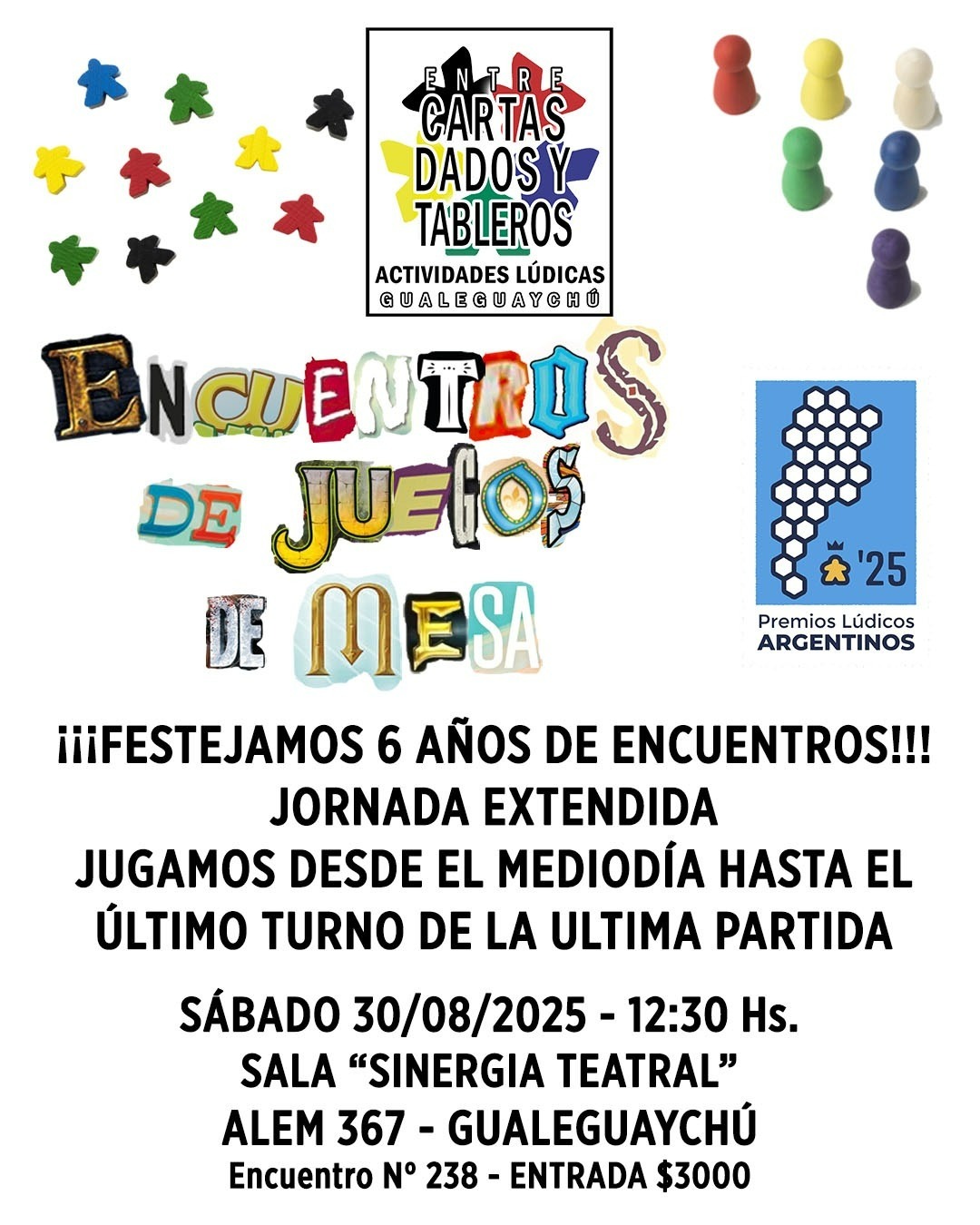 Se va a realizar el festejo de los 6 años de encuentros de juegos de mesa con una jornada extendida para disfrutar de más de 200 de títulos nacionales e internacionales y partidas de juegos de rol.