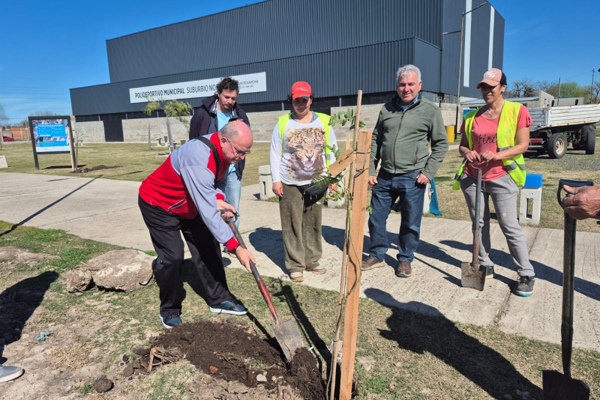 Más específicamente, este viernes por la mañana se realizó la plantación de 68 ejemplares de árboles nativos en la plaza “La Toto” y en el predio y las veredas del Polideportivo Norte.