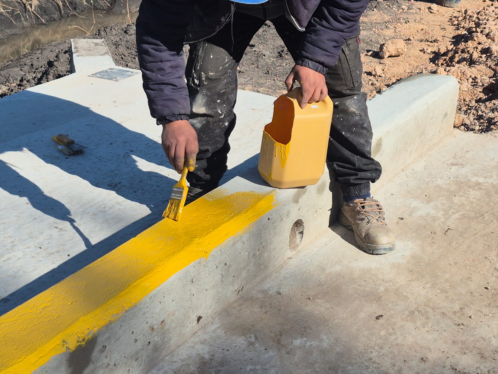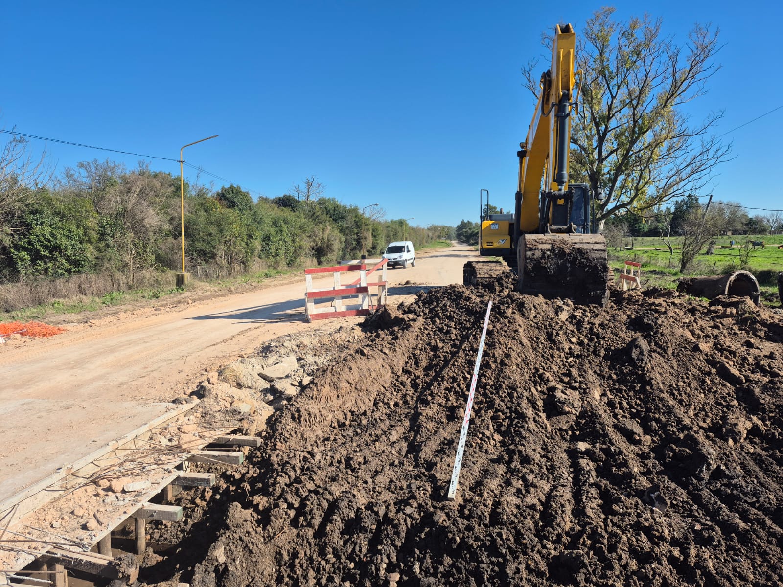 En los últimos días, se llevaron adelante importantes avances en ambos frentes de obra que integran el sistema. En la alcantarilla ubicada sobre calle Maestra Piaggio, se concretó la colocación de barandas metálicas de seguridad, con el objetivo de garantizar un tránsito seguro para los peatones y dar mayor contención en un punto que históricamente representaba un riesgo. Esta medida, sumada a la pintura de los cordones con demarcación amarilla, refuerza el ordenamiento y señalización de la calzada.