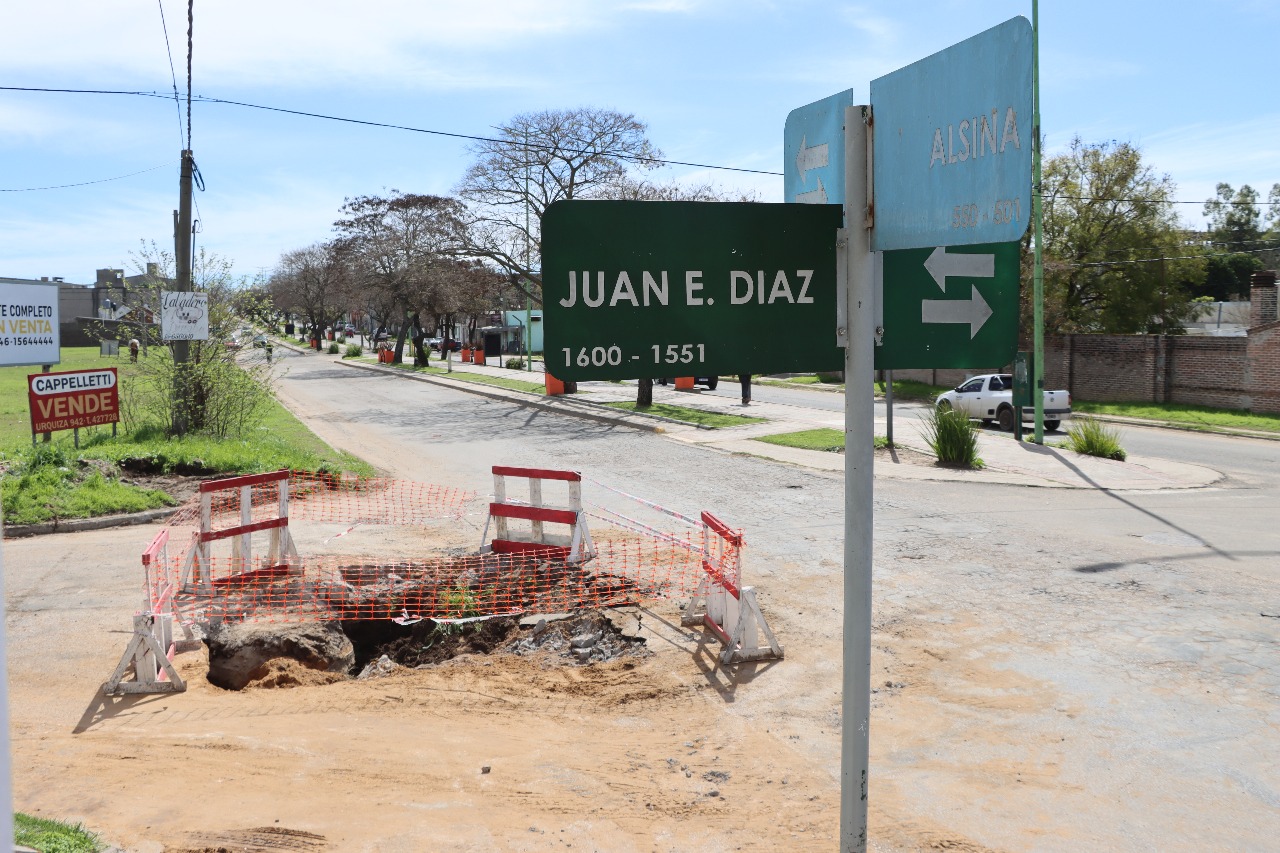 Durante los próximos siete días, la circulación vehicular por calle Juan Díaz, en el tramo comprendido entre Alsina y Rawson, permanecerá interrumpida debido a un hundimiento del pavimento que obligó a la intervención de cuadrillas municipales de diversas direcciones.