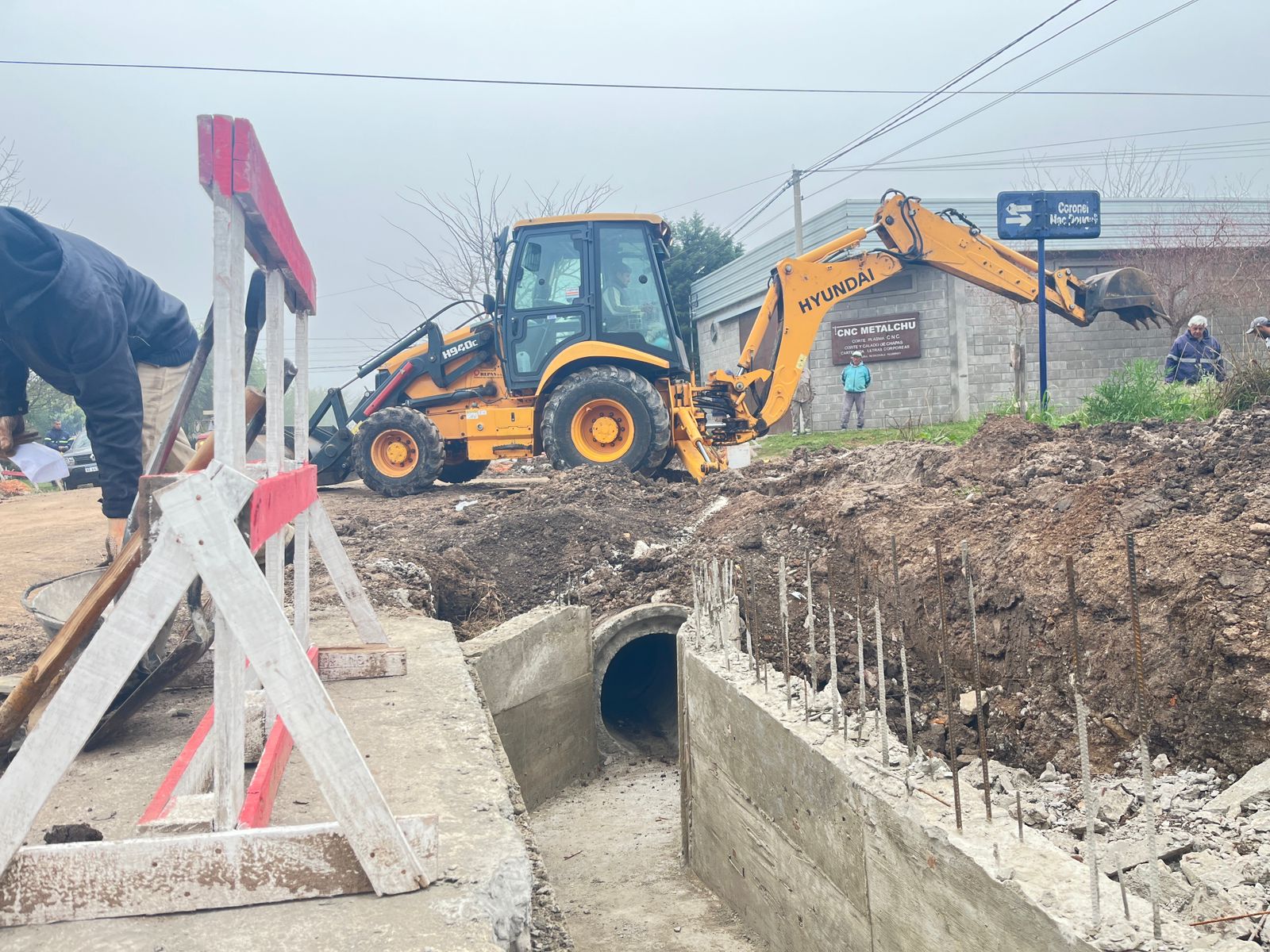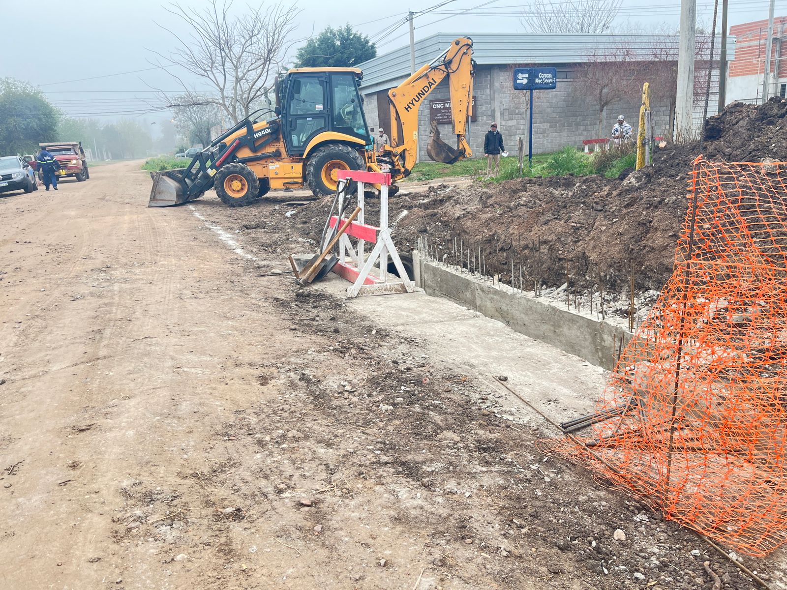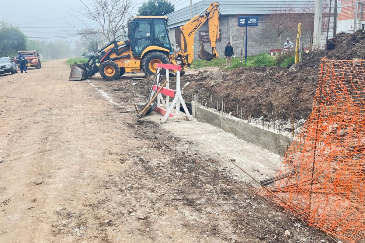 La construcción de cordones cunetas y badenes comenzó luego de que la semana pasada se colocaran varios caños de hormigón armado de gran diámetro, que fueron instalados para aumentar la capacidad de conducción del agua de lluvia y reducir los problemas de acumulación en superficie.