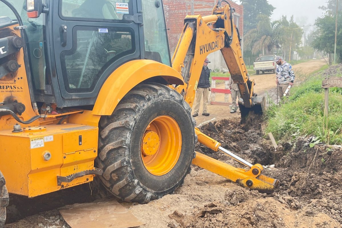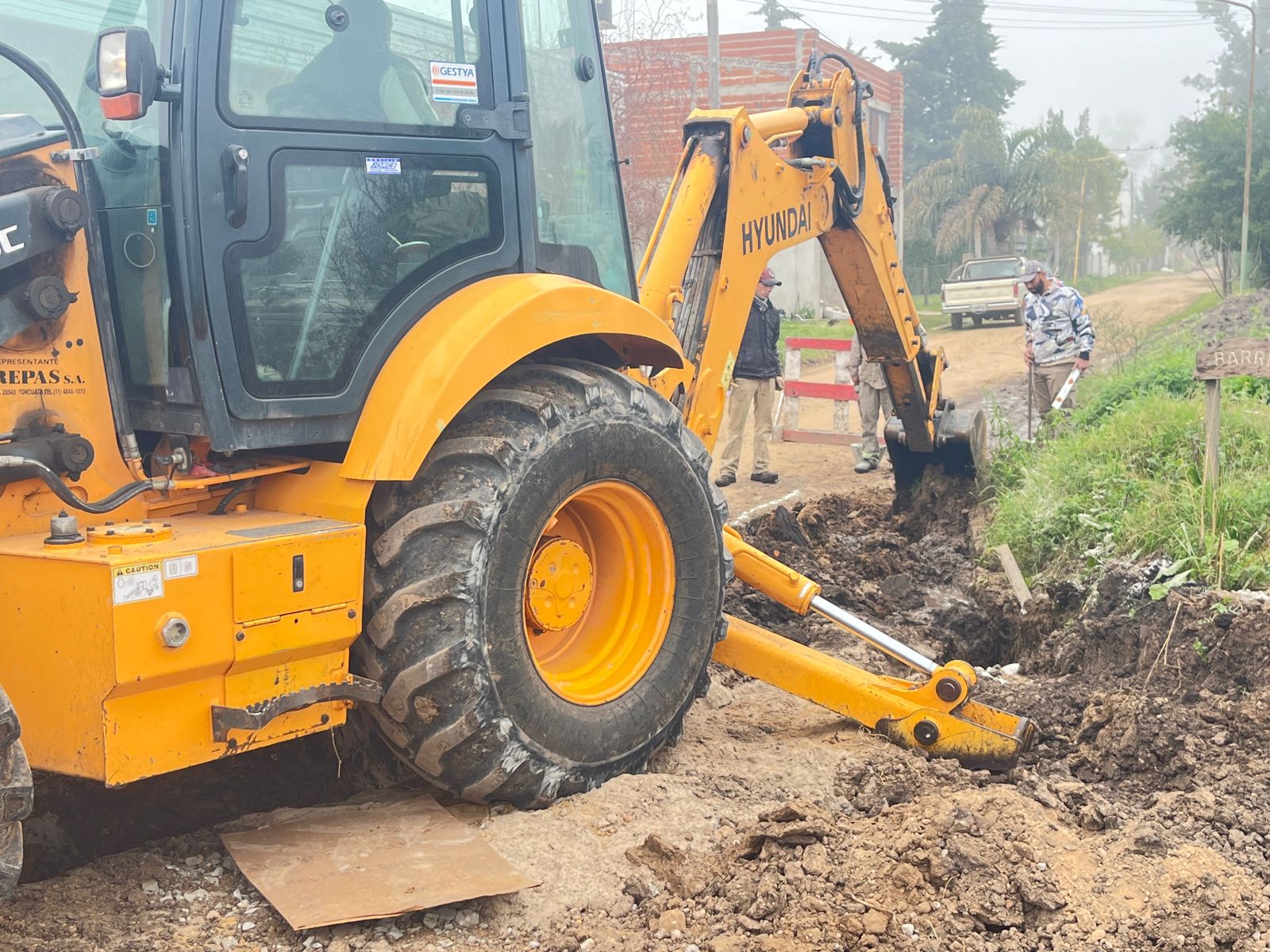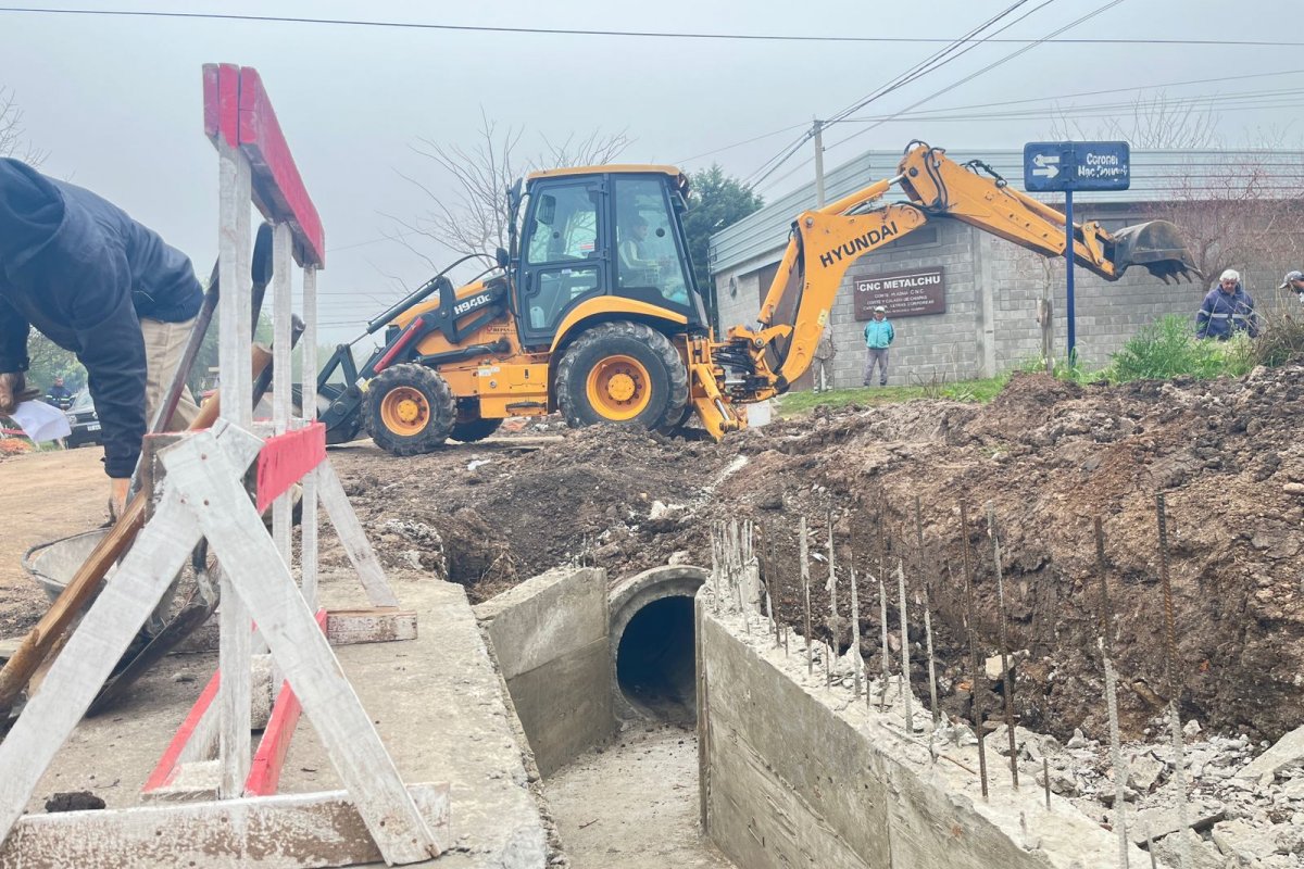 La construcción de cordones cunetas y badenes comenzó luego de que la semana pasada se colocaran varios caños de hormigón armado de gran diámetro, que fueron instalados para aumentar la capacidad de conducción del agua de lluvia y reducir los problemas de acumulación en superficie.