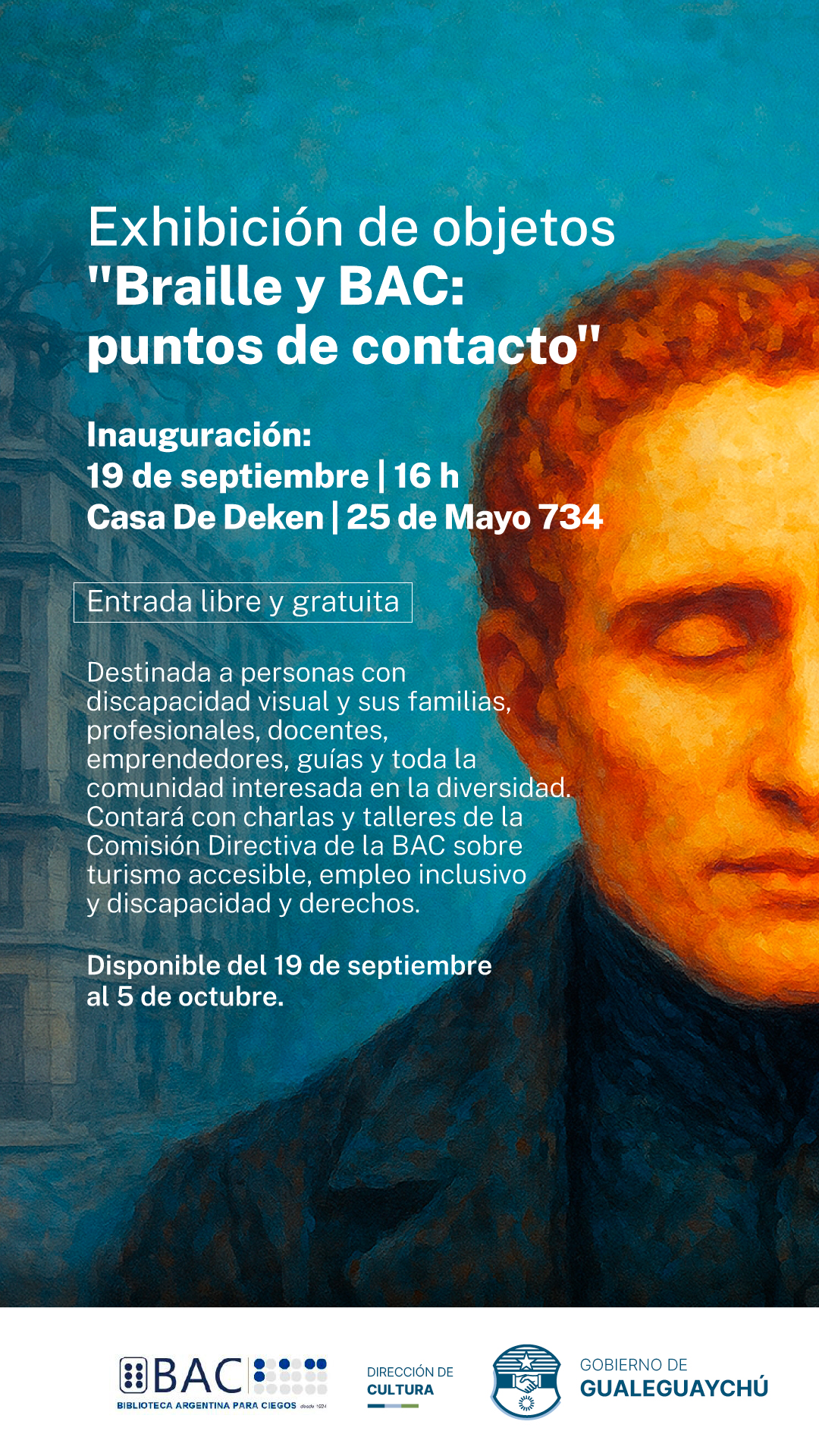 Del 19 de septiembre al 5 de octubre, la casa “De Deken” será sede de la muestra “Braille y BAC: puntos de contacto”, un recorrido que invita a reflexionar sobre la inclusión y el acceso a la información.