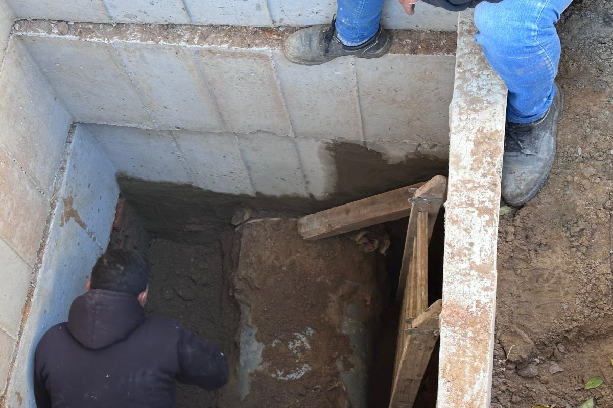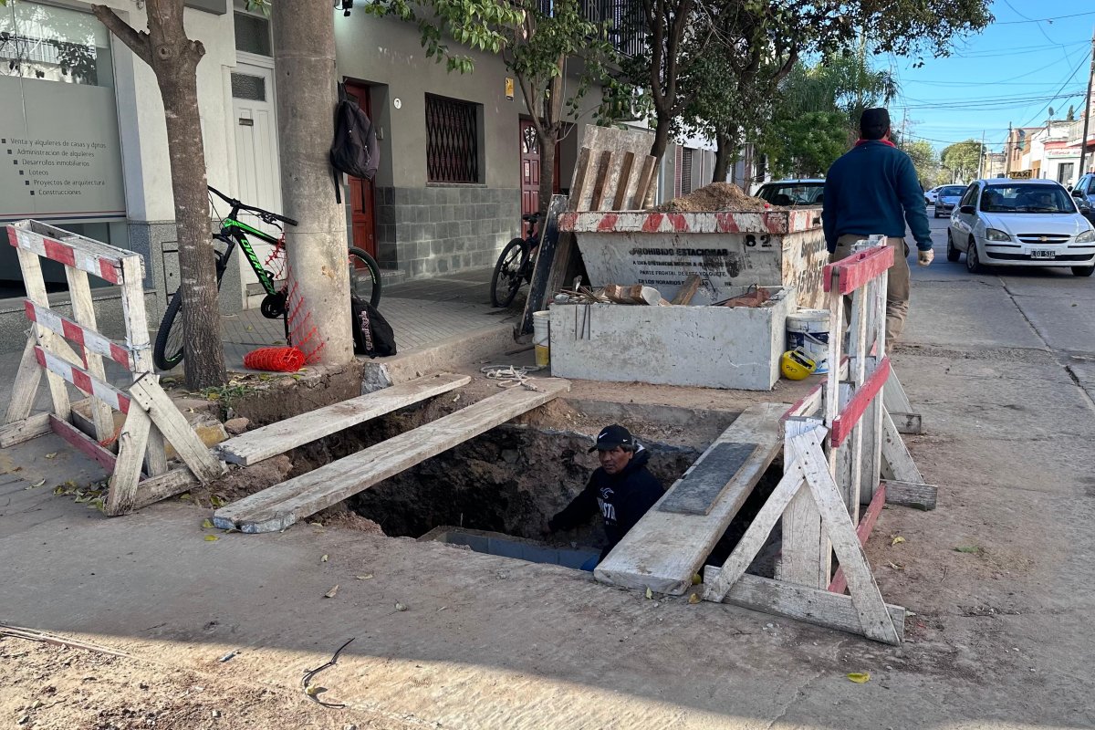 Las dos cámaras de inspección en ejecución son estructuras de gran envergadura: poseen tres compartimientos cada una y alcanzan una profundidad superior a los tres metros, lo que permitirá acceder a la cañería en caso de inconvenientes futuros, sin necesidad de romper el asfalto.