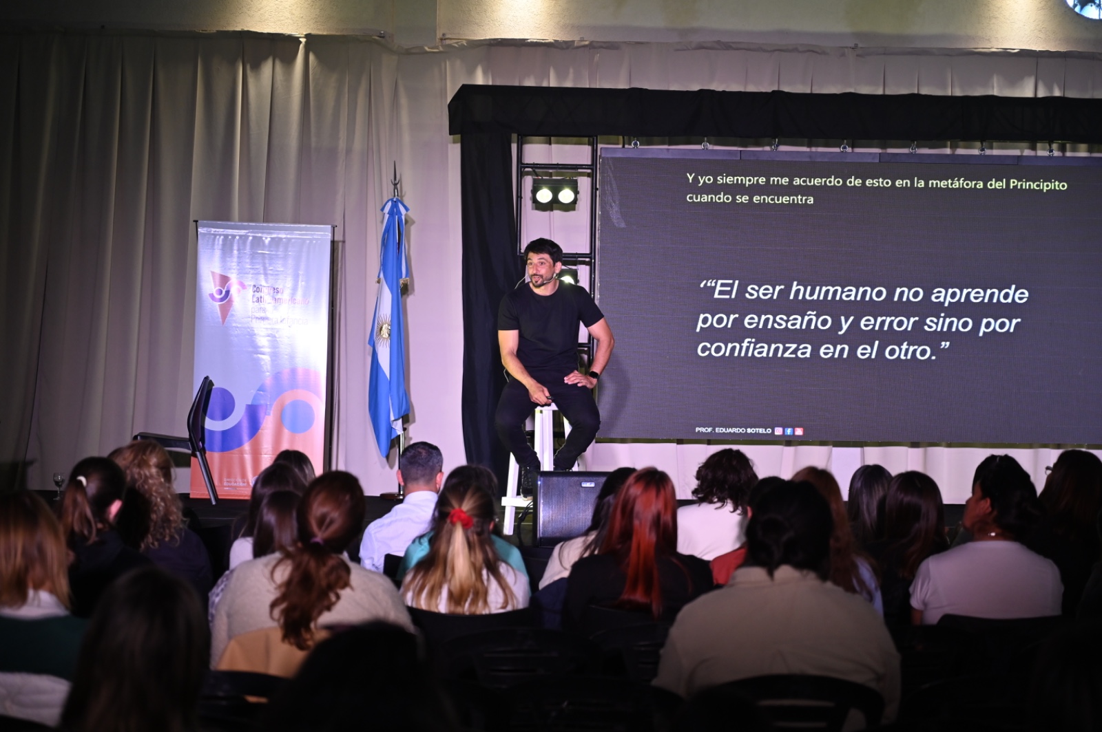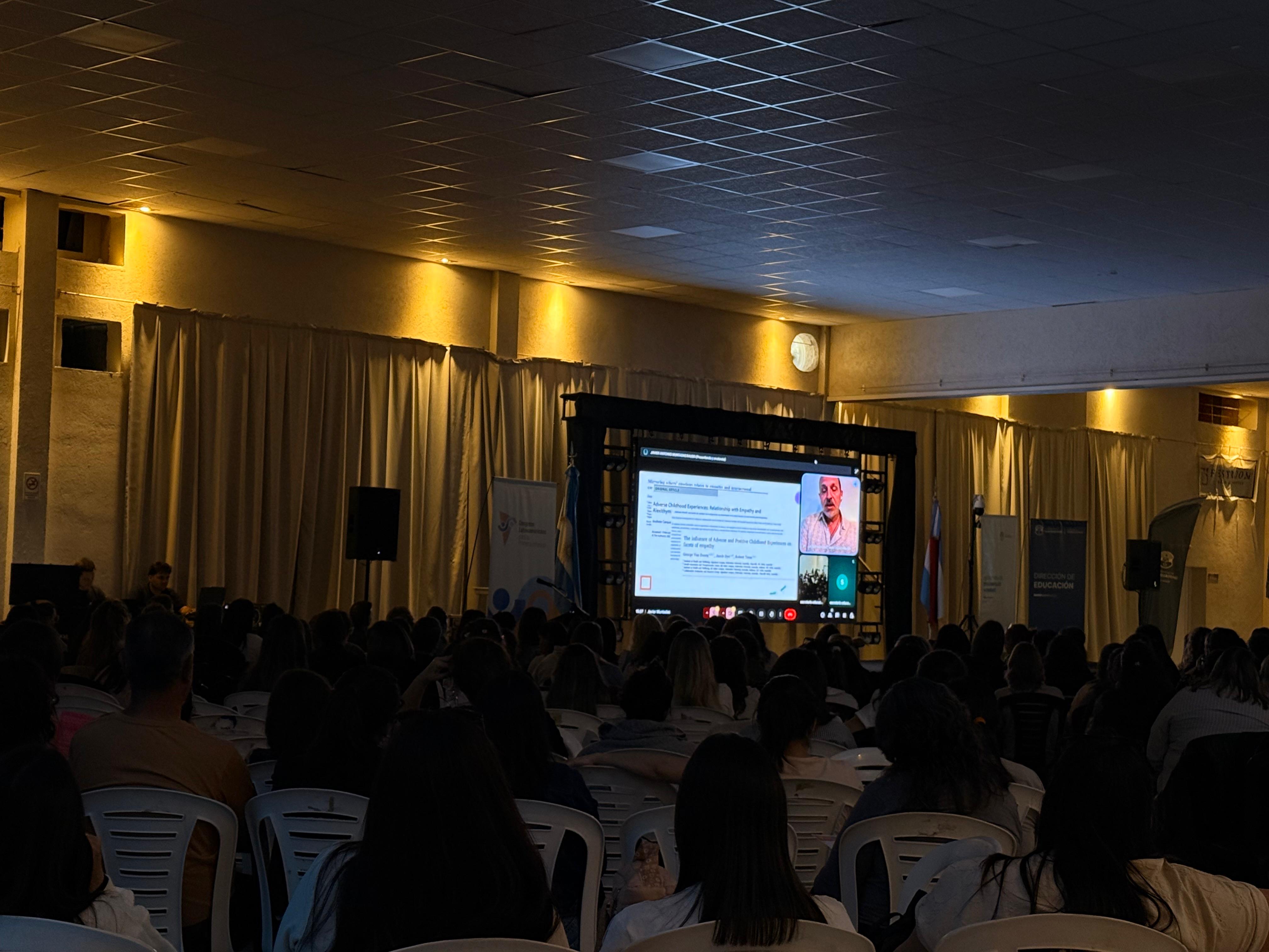 A lo largo del día, las actividades continuaron profundizando en la pedagogía de la diversidad, con una serie de presentaciones que invitaron a repensar el rol de la educación en contextos cada vez más heterogéneos y desafiantes. El Mg. Eduardo Lucas Sotelo propuso una mirada crítica y comprometida sobre la necesidad de reconocer y valorar las diferencias como punto de partida para una enseñanza inclusiva, planteando que la conexión genuina con las infancias solo es posible a partir del conocimiento profundo de sus realidades y trayectorias.