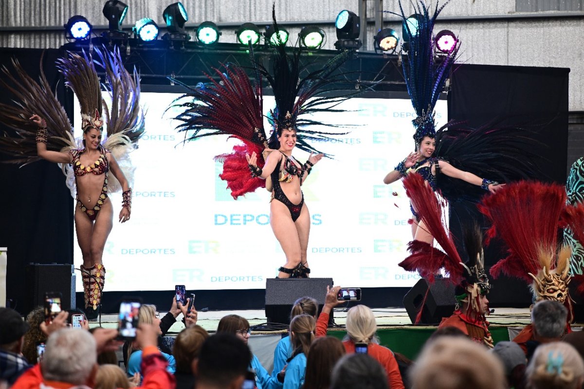 Más tarde, la Murga Esencialmente Divertidos aportó ritmo, humor y color, preparando el clima festivo para el esperado show del Carnaval del País. El momento más vibrante llegó cuando el emblema de la ciudad anfitriona desplegó toda su magia y energía en el escenario. Plumas, brillo, música y alegría hicieron vibrar a las más de mil doscientas personas presentes, que vivieron una experiencia única y característica de Gualeguaychú.
