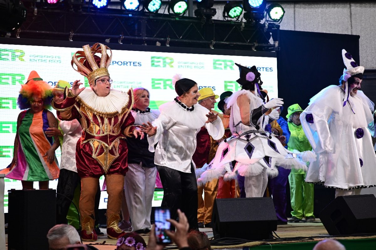 El espectáculo se abrió con la presentación de Miguel Pereyra, seguida por las actuaciones de los ganadores de las disciplinas culturales: en canto solista, Juan Carlos Villagra, del departamento Gualeguaychú; en tango, Casto Suárez Antonio y Mirta Mendoza, del departamento Paraná; y en danza, la pareja de Gabriela Piccini y Francisco Morán, del departamento Uruguay. Cada número artístico fue recibido con aplausos y reconocimiento, demostrando el talento y la energía que los adultos mayores comparten con orgullo en cada edición de los Juegos.