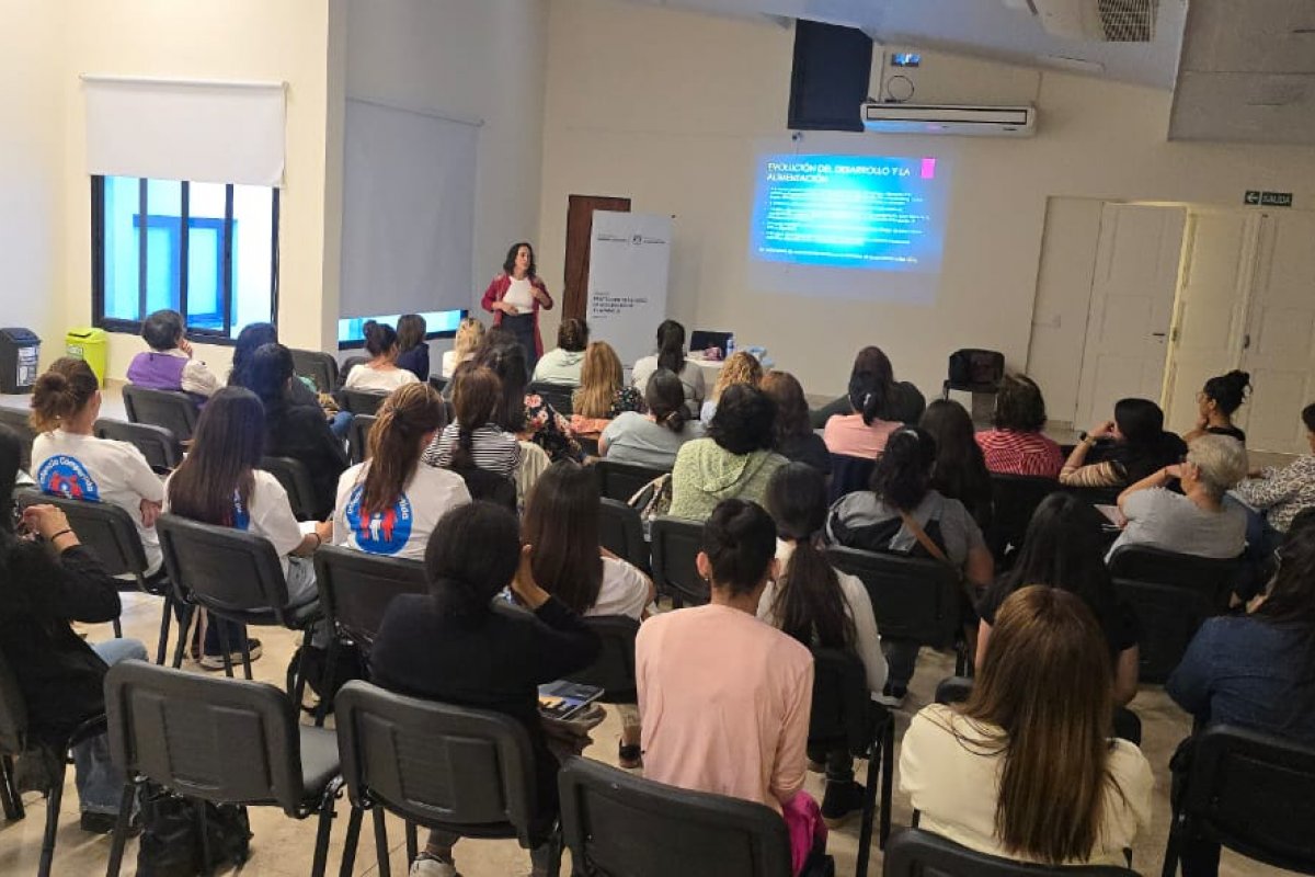 La jornada tuvo lugar en la Caja Municipal de Jubilaciones, Pensiones y Retiro y estuvo a cargo de la licenciada Vanina Scavuzzo, quien desarrolló el módulo sobre pautas de alarma en la nutrición en niñas, niños y adolescentes. Durante la charla se brindaron herramientas para identificar señales tempranas vinculadas al estado nutricional, así como estrategias para promover hábitos alimentarios saludables en los distintos espacios de cuidado comunitario.