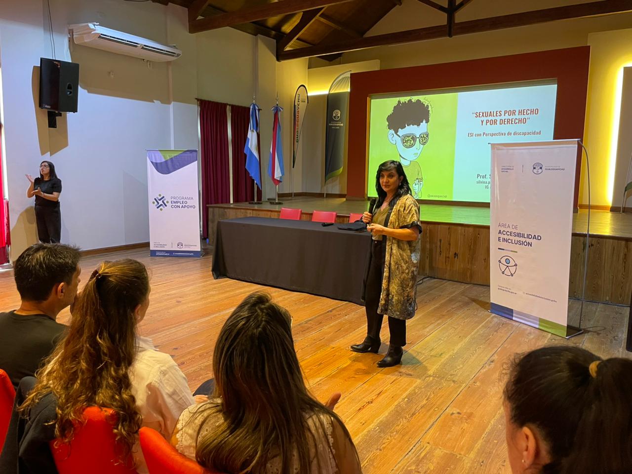 Este viernes se llevó a cabo en el Centro de Convenciones la primera actividad del Mes de la Inclusión: la Jornada de Formación “Educación Sexual Integral con perspectiva de discapacidad”, a cargo de Silvina Peirano, profesora de Educación Especial y especialista en Sexualidad y Diversidad Funcional. La propuesta inauguró un ciclo de encuentros de reflexión, capacitación y sensibilización impulsados por el Área de Accesibilidad e Inclusión, dependiente de la Secretaría de Desarrollo Humano.