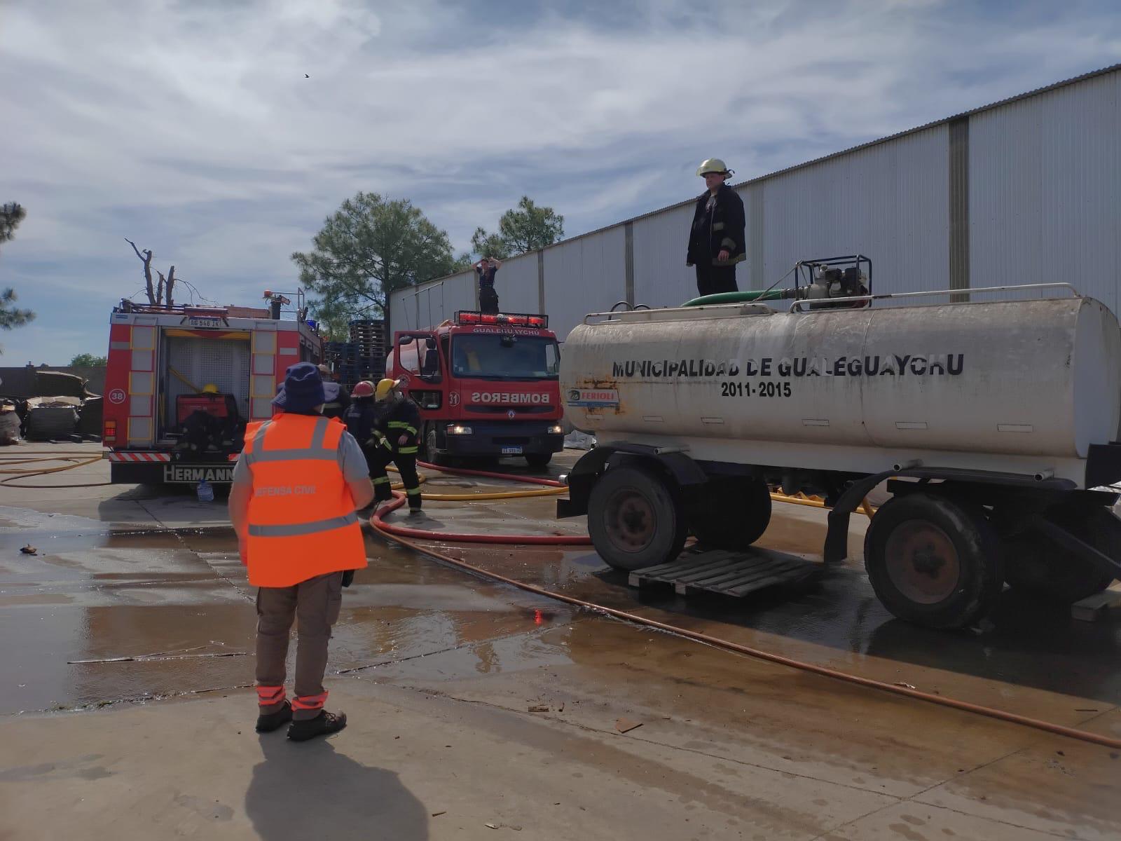 La Municipalidad de Gualeguaychú colaboró con Bomberos en el incendio de un depósito en el Acceso Sur