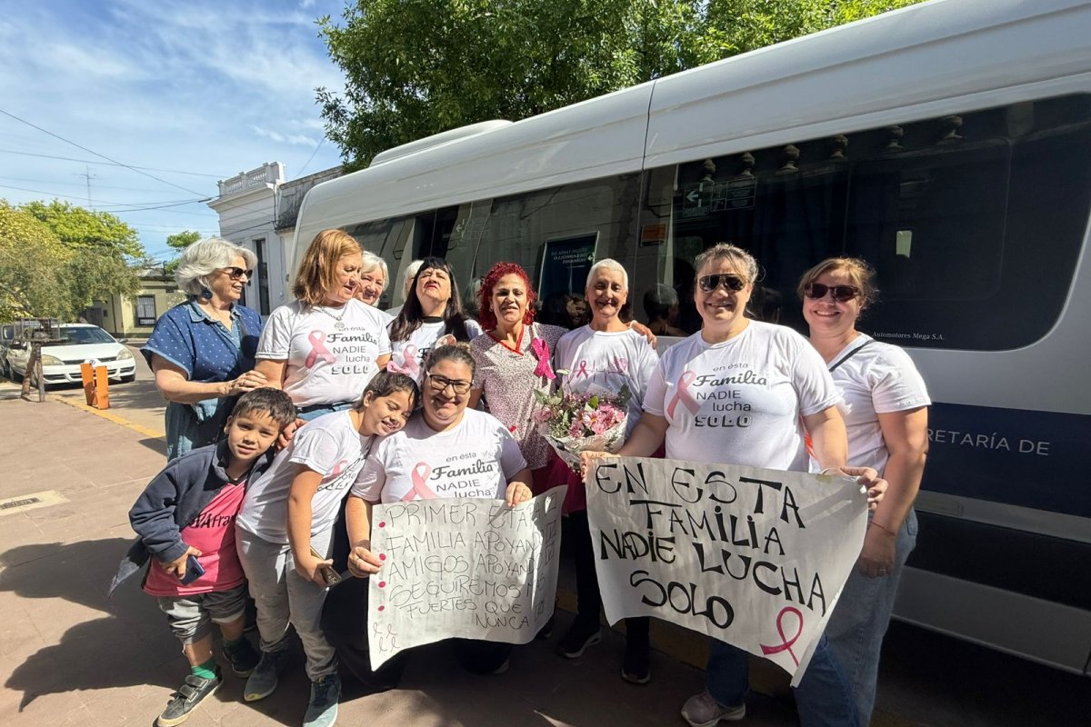 En el marco del Mes del Cáncer de Mama, el Gobierno de Gualeguaychú pone en valor el trabajo cotidiano de este servicio, que en su mayoría acompaña a mujeres que transitan esta enfermedad. Hoy, la paciente María del Valle Magallán, de 55 años, culminó su tratamiento iniciado el 30 de septiembre. María, cuidadora de niños y adultos, simboliza la fuerza y el espíritu de superación de tantas mujeres que, con el acompañamiento del sistema público y de sus familias —que en esta ocasión se organizaron y propusieron el lema “En esta familia, nadie lucha solo” como emblema de unión y esperanza— logran completar su proceso terapéutico con contención y optimismo.