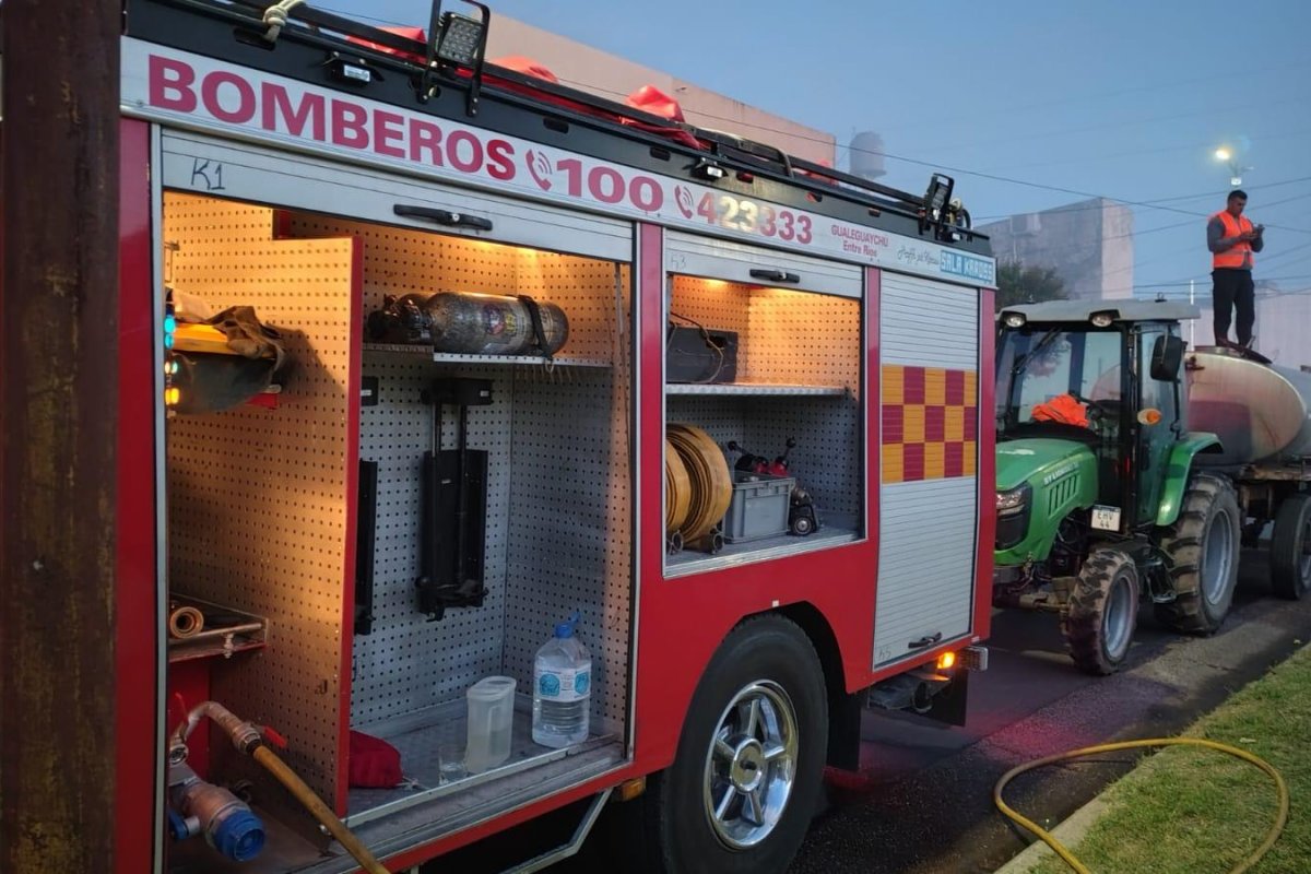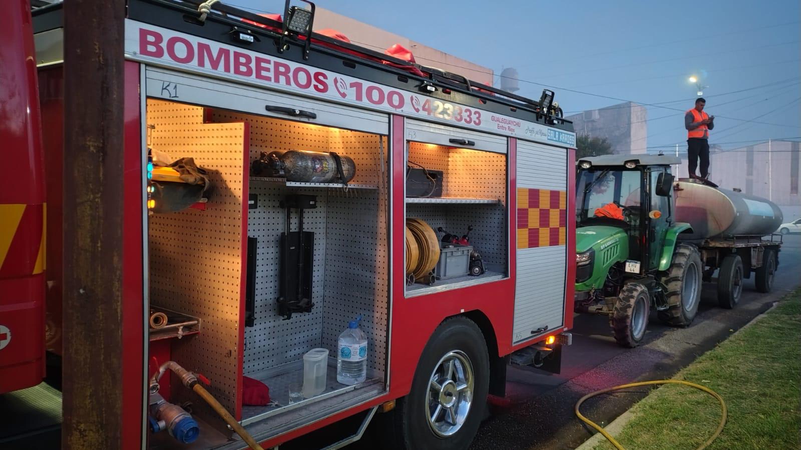 Durante la madrugada, Bomberos Voluntarios Gualeguaychú desplegó un amplio operativo de emergencia en Avenida Parque, casi Juan D. Perón, para controlar un incendio de gran magnitud. La intervención contó con el acompañamiento del Área de Defensa Civil y de distintas dependencias del Gobierno de Gualeguaychú, que colaboraron para reforzar las tareas en el lugar.
