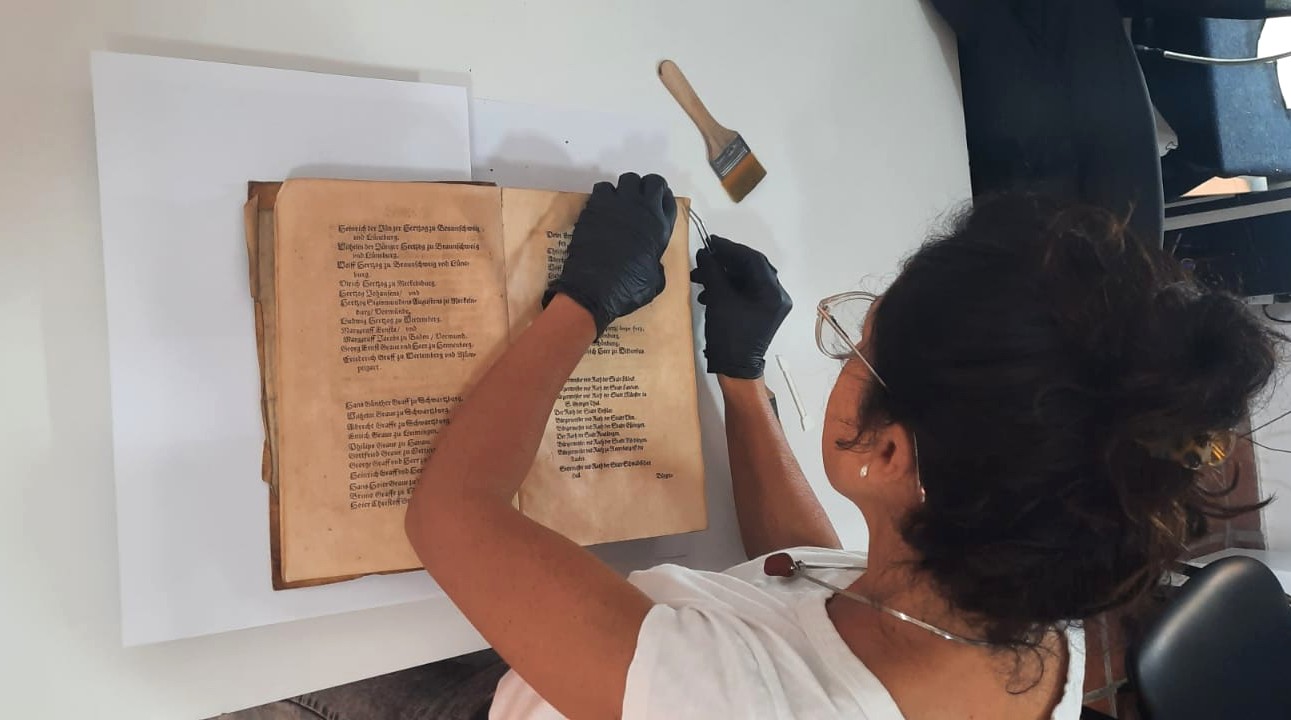 El ejemplar pertenece al Seminario Concordia de la Iglesia Evangélica Luterana Argentina (IELA). En el marco de un convenio celebrado entre el Seminario y la Dirección de Cultura, el libro fue trasladado desde la localidad bonaerense de José León Suárez hasta el Centro Documental, donde se llevó adelante un cuidadoso proceso de conservación preventiva y digitalización integral.
