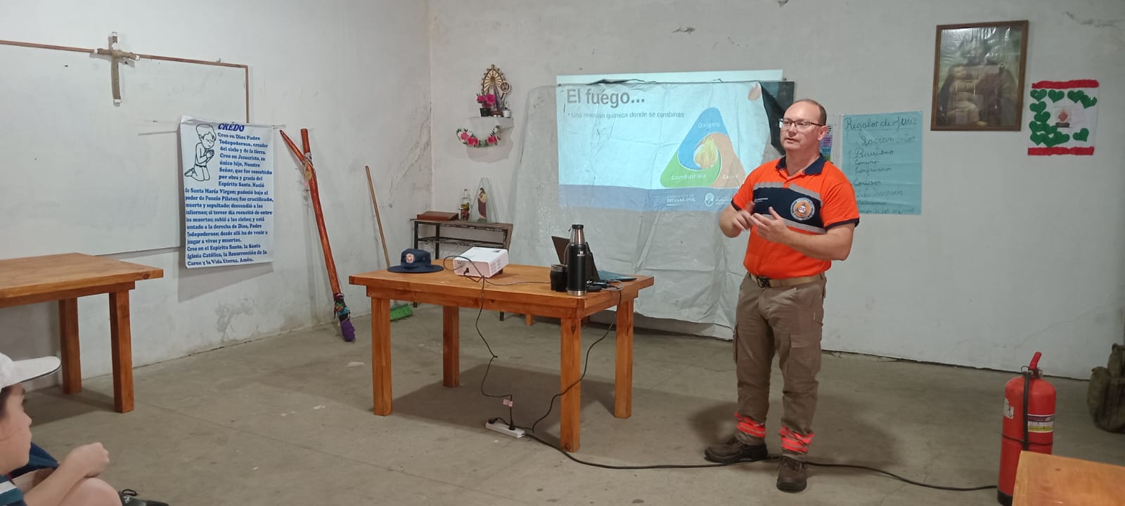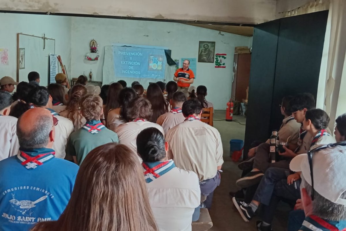 El Director de Defensa Civil, Nicolás Bozzani, llevó adelante una capacitación dirigida a todas las ramas del Grupo Scout Virgen de Guadalupe, con el objetivo de fortalecer los conocimientos sobre prevención y respuesta ante incendios y otras emergencias.