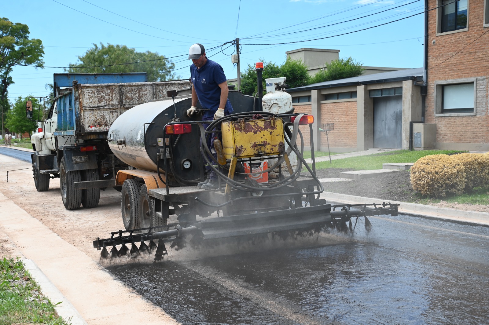 Este martes se realizó la imprimación asfáltica en el primero de los cuatro tramos en los cuales se dividió este tramo, el más extenso a nivel longitudinal desde que se reabrió la Planta de Asfalto en el Parque Industrial.
