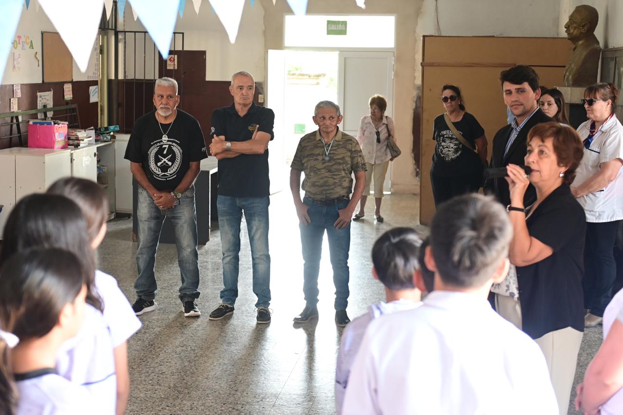 En esta ocasión, el reconocimiento tuvo lugar en la Escuela N.º 90, donde se descubrió una placa en homenaje al VGM Ángel Omar Beatriz. Participaron estudiantes, docentes, autoridades educativas y municipales, además de familiares del veterano.