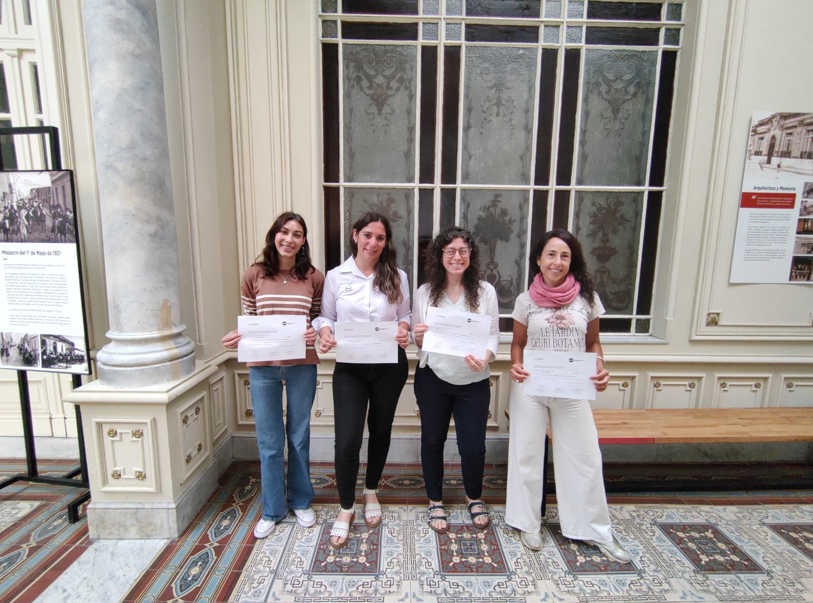 El pasado 14 de noviembre se graduaron de la Diplomatura en Montaje de Espacios Expositivos de la Universidad Nacional de las Artes (UNA) las trabajadoras de museos del Gobierno de Gualeguaychú: la profesora Micaela Barrionuevo, las muséologas Natalia Derudi y Abril Peruzzo, y la licenciada Marianela Muñoz.