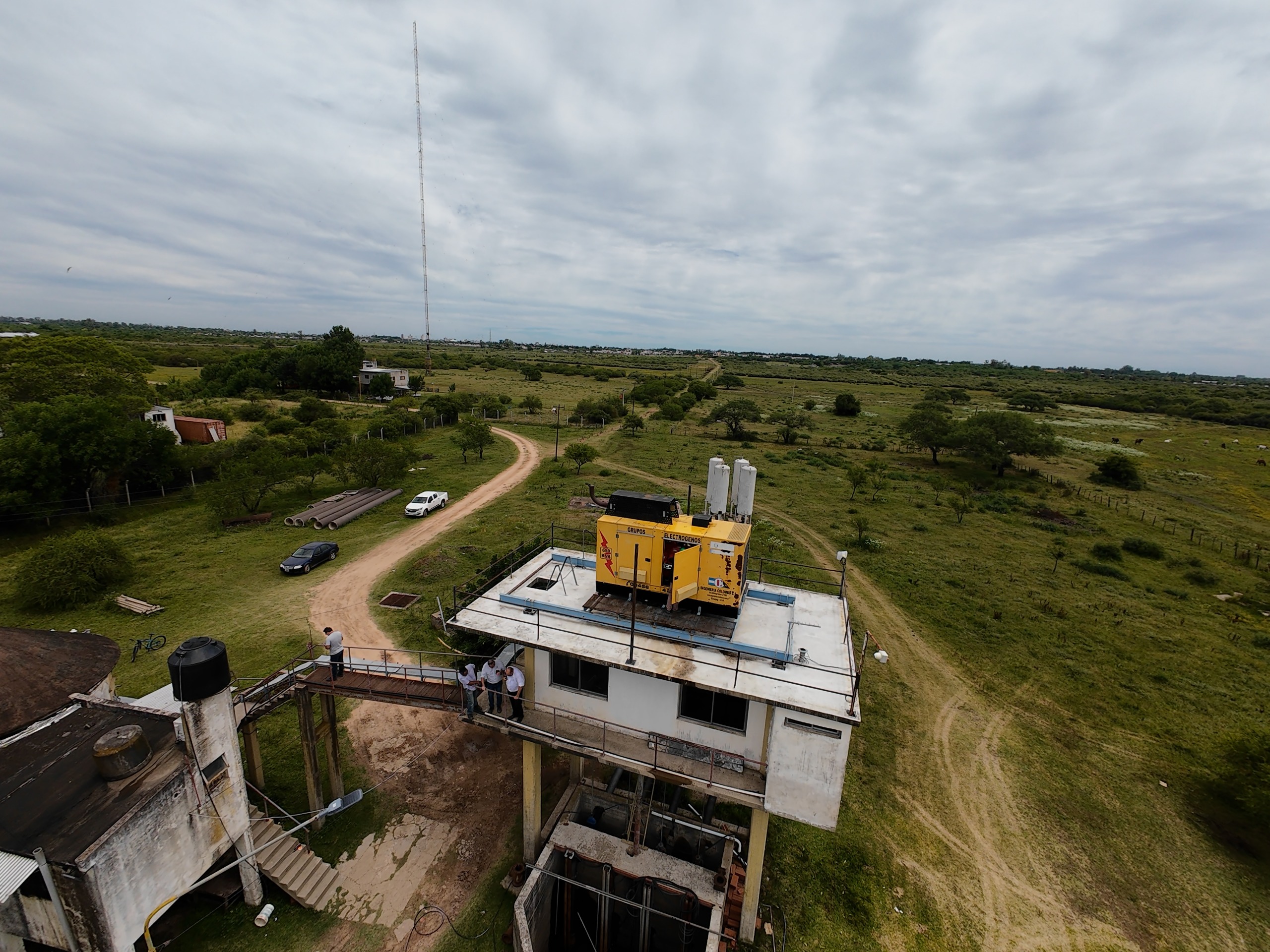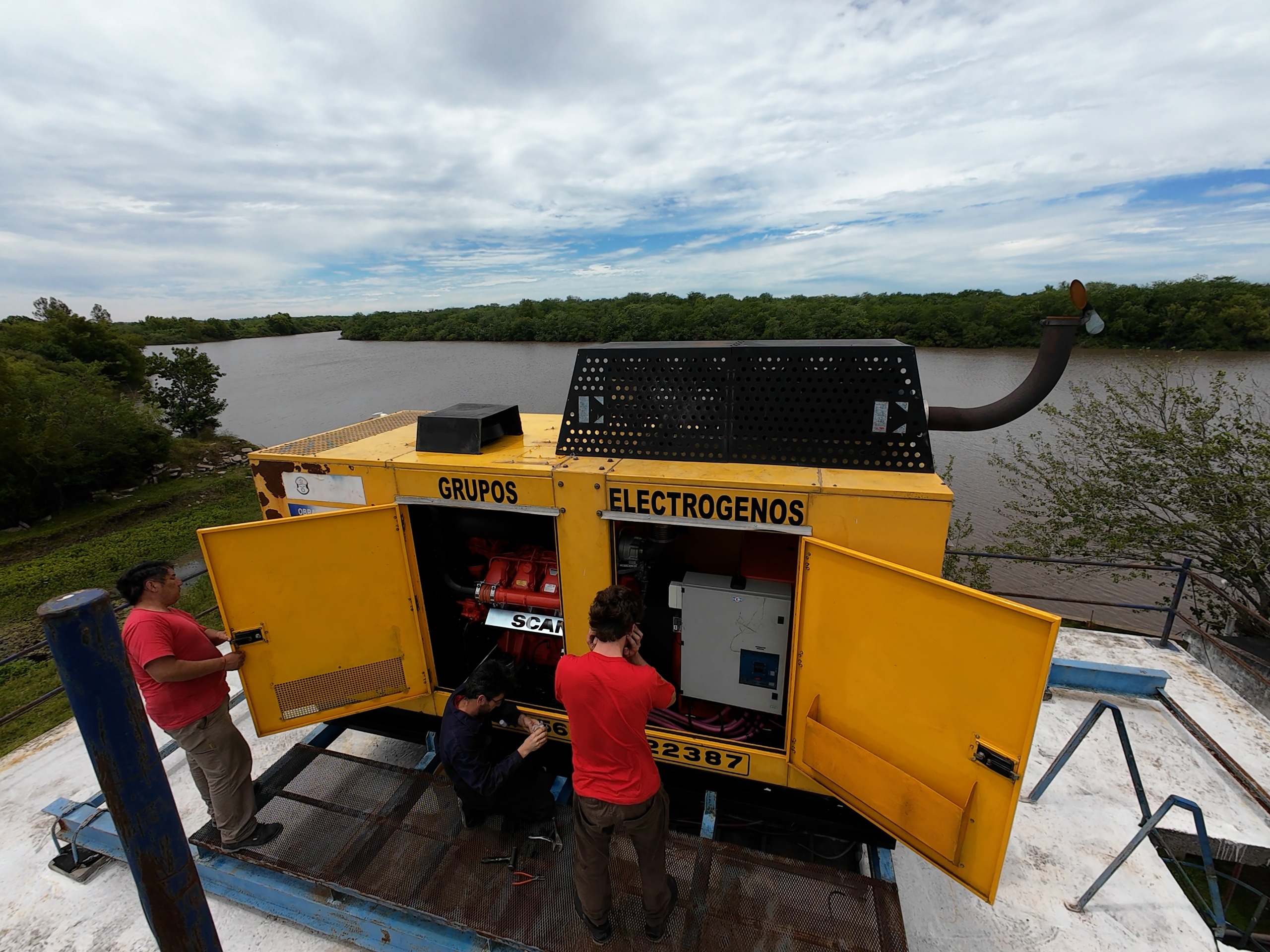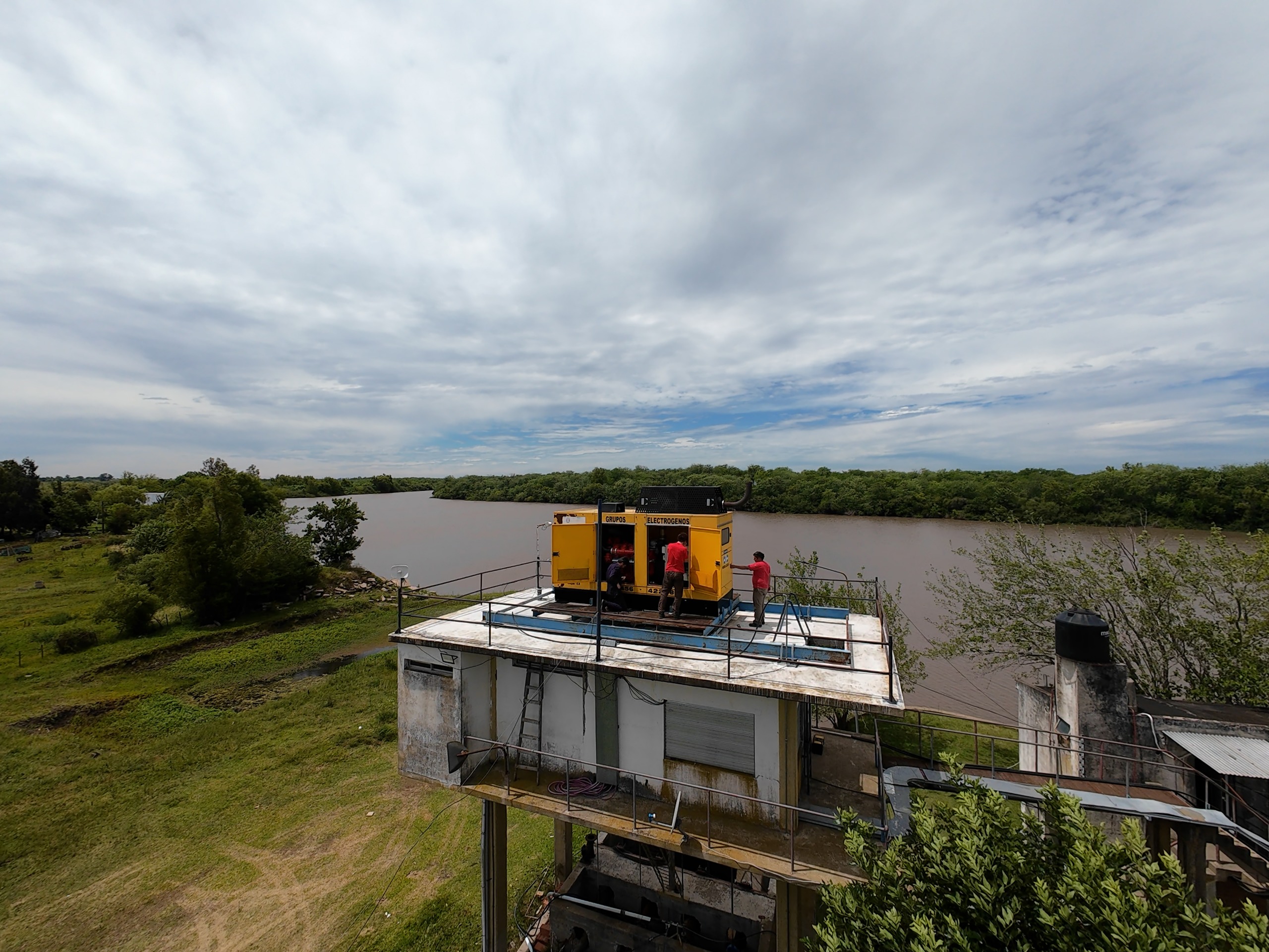 Por su diseño, prestaciones y nivel tecnológico, el grupo electrógeno está orientado al respaldo de servicios esenciales, como en este caso el sistema de bombeo de agua desde el río hasta la planta de Obras Sanitarias.