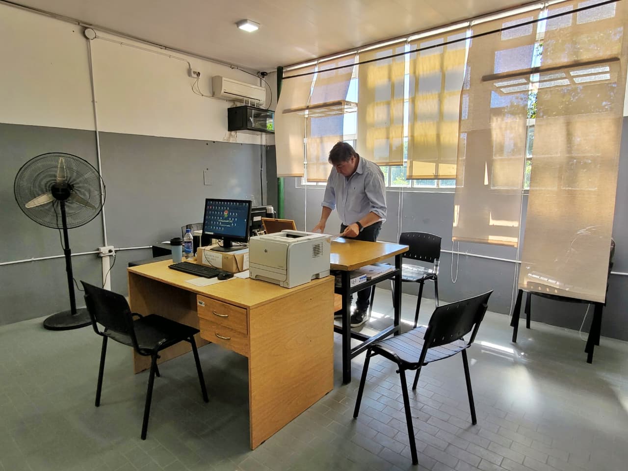 Superada esa etapa, comenzaron las obras de restauración estructural: se recuperó la escalera, se renovó la instalación eléctrica en su totalidad y se colocó nueva iluminación. También se redefinieron áreas de trabajo mediante divisiones de durlock, se pintaron todas las paredes y se colocaron techos nuevos. En paralelo, se restauraron y acondicionaron los baños de la planta baja para garantizar condiciones sanitarias dignas para el personal.