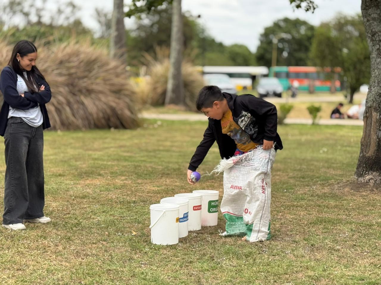 Luego de la instancia teórica, se desarrolló una propuesta lúdica pensada para reafirmar los saberes adquiridos. La actividad consistió en un juego tipo carrera de embolsados, en el que los chicos debían trasladar pelotitas que simulaban residuos y clasificarlas correctamente en los distintos tachos, según el tipo de desecho correspondiente.