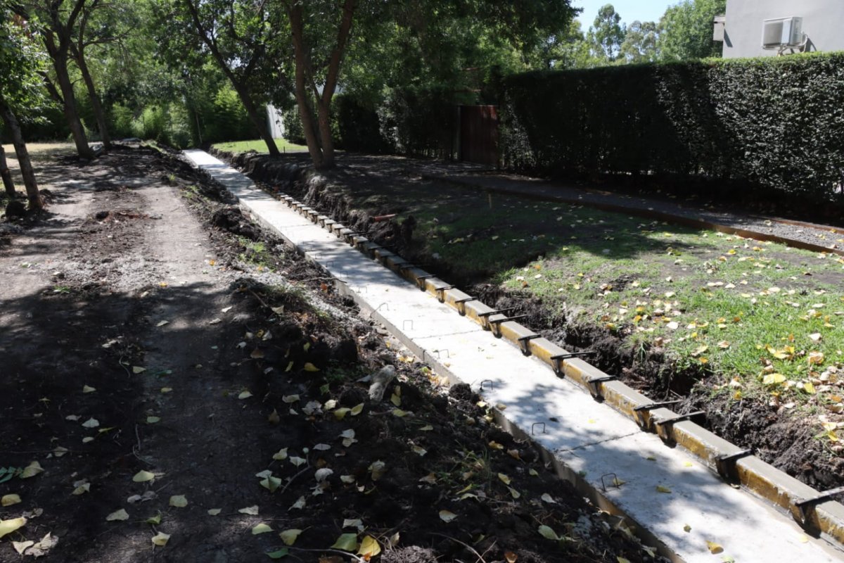 La obra incorpora encofrados metálicos, armaduras de acero, nivelación de subrasante, excavación con maquinaria vial liviana y compactación manual en zonas próximas a raíces y áreas parquizadas.