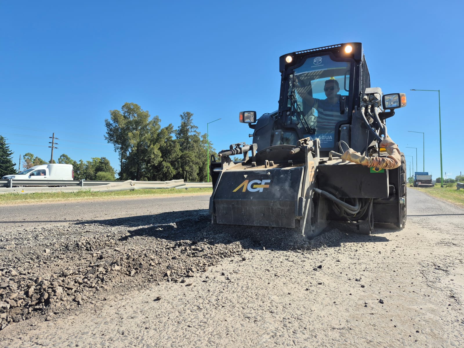 El Gobierno de Gualeguaychú avanza con la restauración de la calzada del Acceso Sur, uno de los corredores viales de mayor circulación y principal puerta de entrada a la ciudad, mediante una intervención que comprende tareas de fresado y bacheo superficial con mezcla asfáltica en caliente sobre las trochas más afectadas del trazado.