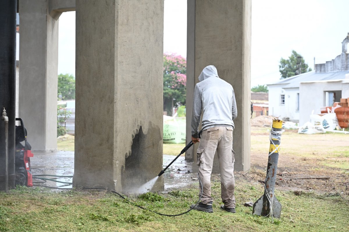 Una vez concluida esa etapa, se avanzará con la aplicación de pintura hasta la altura del primer anillo estructural. La intervención parcial responde a criterios técnicos y presupuestarios. El tratamiento del resto del tanque se proyecta para una instancia posterior, ya que requiere equipamiento específico y personal especializado en trabajos de pintura en altura, lo que implica una planificación diferenciada y mayores recursos.