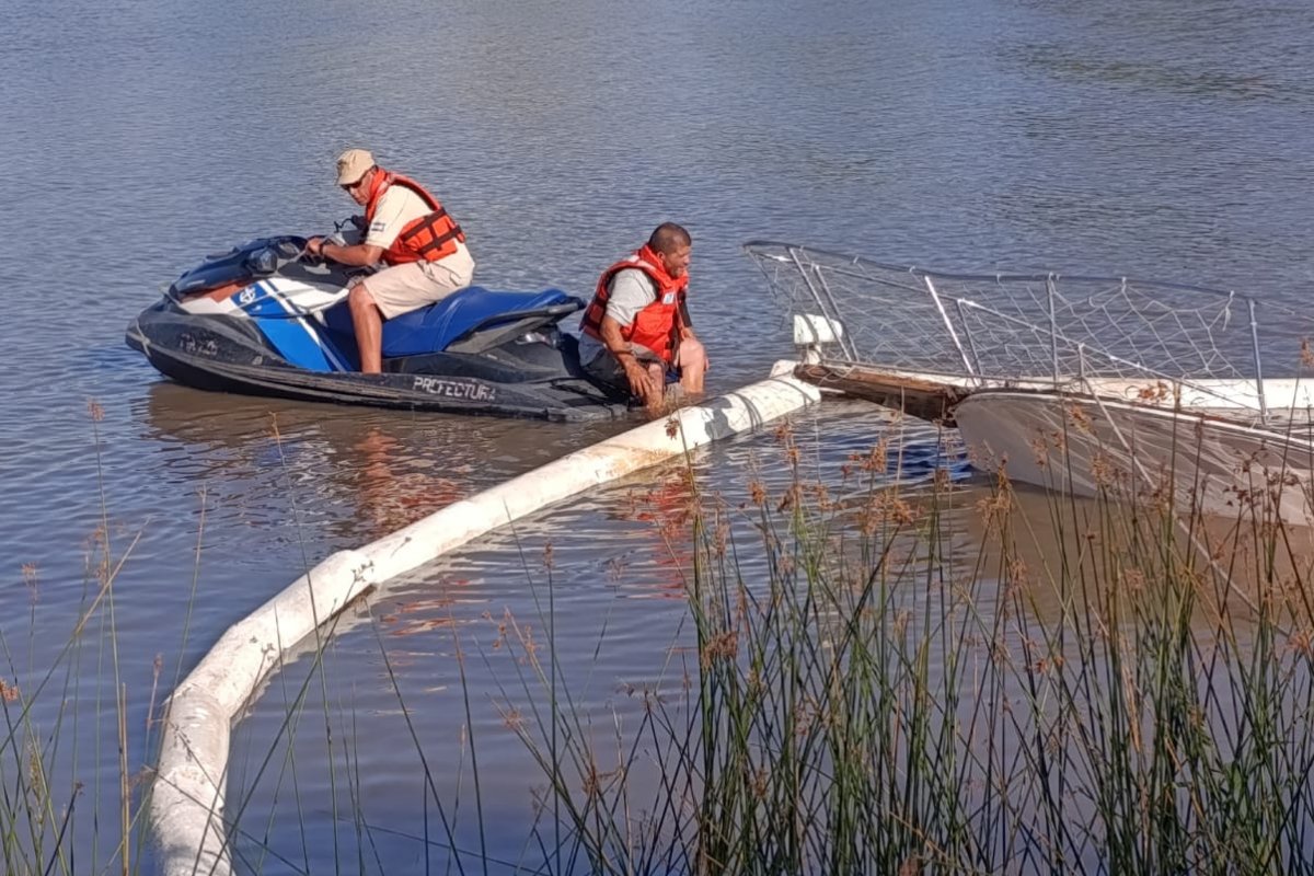 El hecho se registró cerca de las 15 horas de este sábado, momento en que personal de la Guardia Ambiental fue convocado para intervenir en el lugar. Como medida preventiva, se dispuso la colocación de una barrera de contención ante la eventual pérdida de combustible, dado que se constató la presencia de hidrocarburos en el agua, aunque sin detectarse un derrame de gran magnitud.