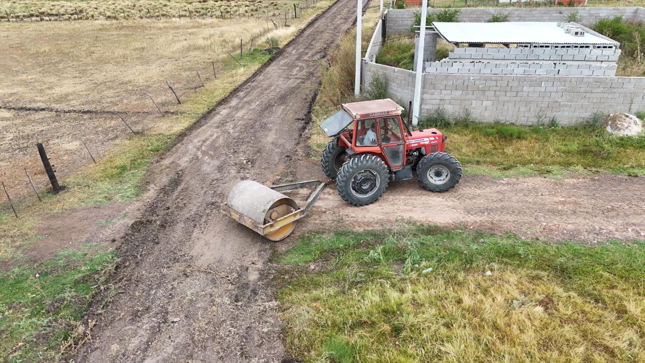 El esquema de trabajo incluyó mantenimiento vial con aportes de materiales, una metodología que permite recuperar superficies, consolidar trazas y extender la vida útil de calles que no cuentan con pavimento.