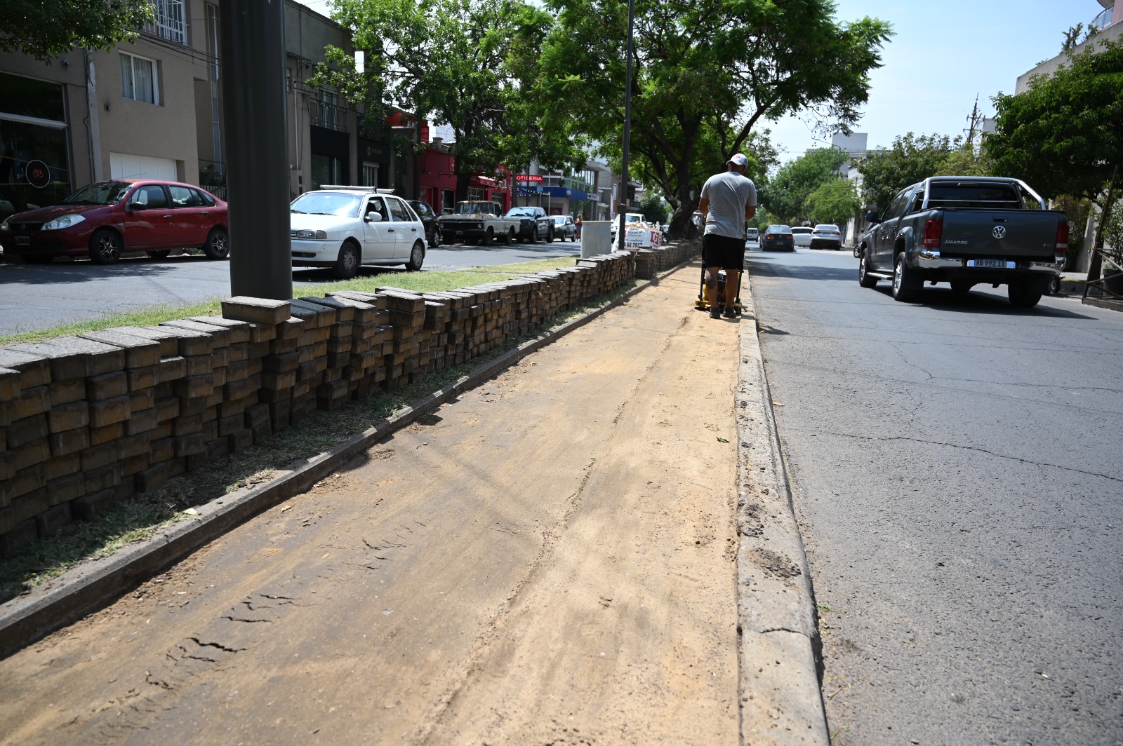 La intervención apunta a corregir desniveles provocados por el crecimiento de raíces, una problemática recurrente en estos sectores que afecta la uniformidad de la superficie y representa un riesgo para quienes circulan a pie. Para resolverlo, las cuadrillas retiran la totalidad de los adoquines, realizan la limpieza profunda del sustrato y eliminan restos vegetales acumulados bajo la calzada peatonal.