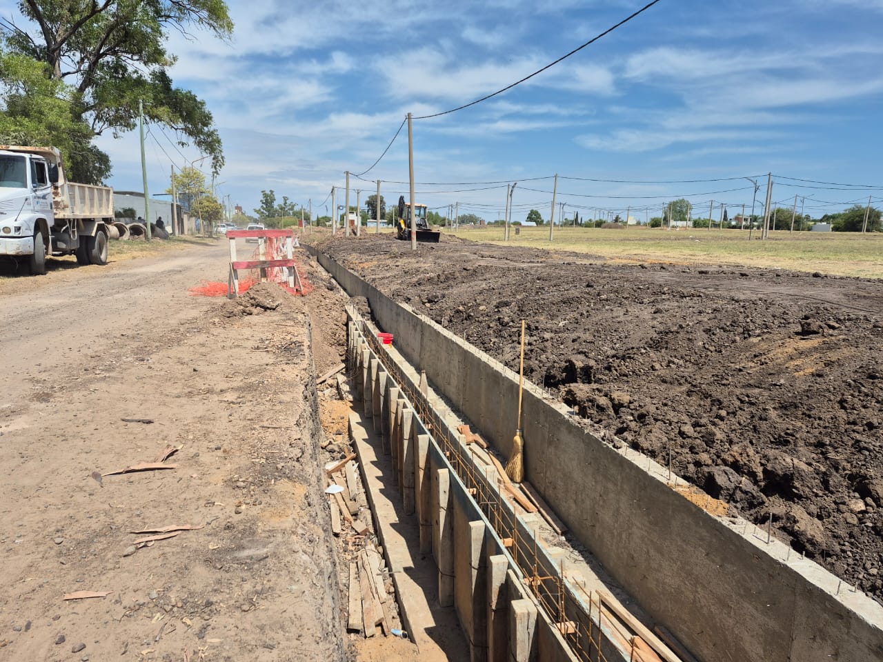 En el sector intervenido, el canal de hormigón armado ya cuenta con tramos estructurales ejecutados y otros en proceso de conformación, lo que permite avanzar en paralelo con las tareas de movimiento de suelo, nivelación y adecuación del terreno.